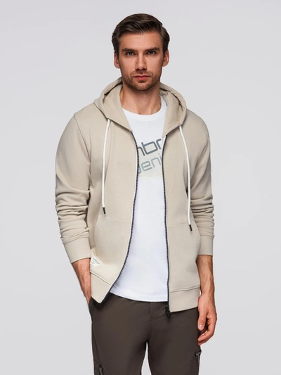Bluza męska dresowa BASIC rozpinana z kapturem - jasnobeżowa V1 OM-SSBZ-0178