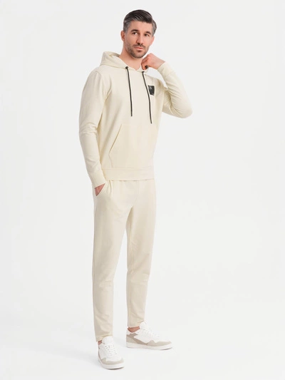 Męski komplet dresowy bluza z kapturem + spodnie dresowe - kremowy V2 Z107
