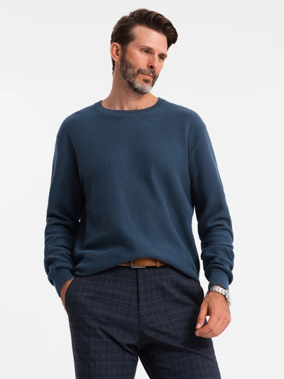 Męski sweter RELAXED FIT z dzianiny o diamentowym splocie – granatowy V2 OM-SWSW-0110