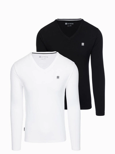 Zestaw męskich longsleeve'ów SLIM FIT z dekoltem typu V i logotypem 2-pak – mix biały/czarny V4 Z87