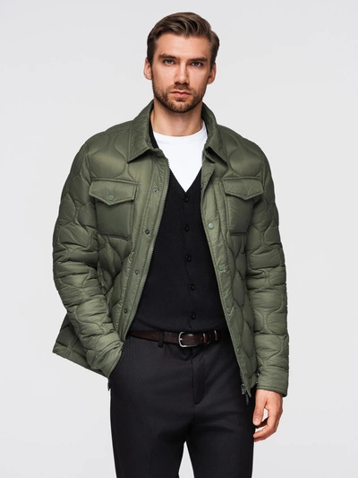 Kurtka pikowana męska w koszulowym fasonie – oliwkowa V2 OM-JALP-0215