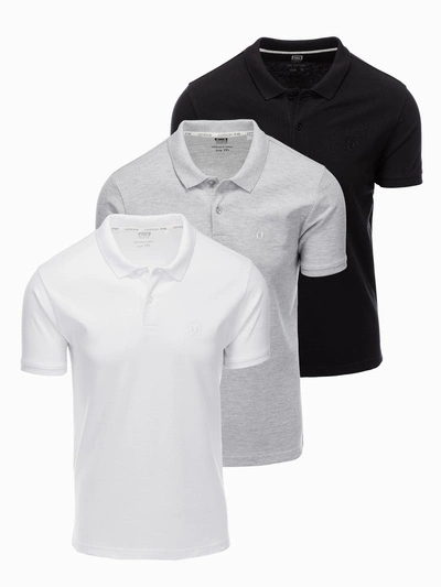 Komplet bawełnianych męskich t-shirtów polo BASIC – czarny/szary melanż/biały V2 OM-POBS-0133