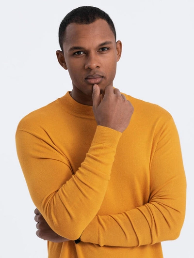 Półgolf dzianinowy męski z wiskozą - musztardowy V5 OM-SWTN-0100