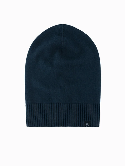 Męska czapka zimowa beanie z bawełnianej dzianiny – granatowa V4 OM-ACWH-0124