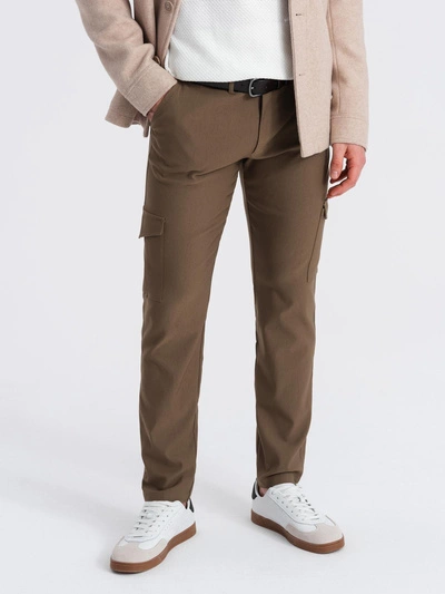 Spodnie męskie materiałowe REGULAR z kieszeniami cargo - oliwkowe V2 OM-PACG-0178
