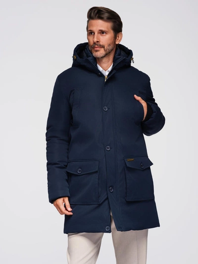 Elegancka męska parka z kieszeniami cargo i kapturem – granatowa V2 OM-JAPJ-0287