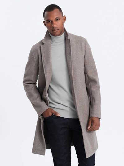 Męski lekki płaszcz jednorzędowy - jasnobrązowy V4 C636