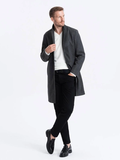 Męski lekki płaszcz jednorzędowy - grafitowy V5 C636