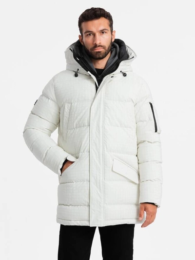 Męska długa kurtka parka ze strukturalnej tkaniny – biała V1 OM-JALJ-0201