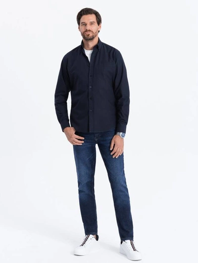 Bawełniana koszula męska typu Oxford z kieszonką REGULAR – granatowa V5 OM-SHOS-0108