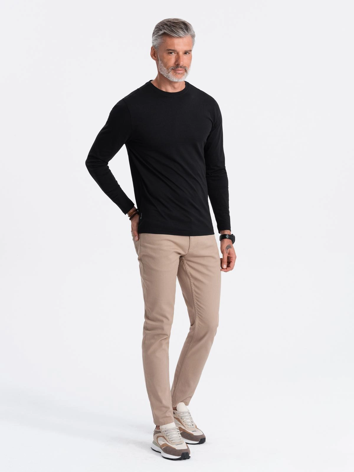 Bawełniany longsleeve oferuje nieograniczone możliwości zabawy modą. Bez problemu odnajdzie swoje miejsce w każdym stylu, stając się inspiracją do wielu unikalnych outfitów. Posiadanie co najmniej dwóch basicowych koszulek w szafie oznacza większy wybór w zakresie kompozycji ubiorów. Zastosowana wysokiej jakości bawełna zapewnia efekt drugiej skóry. To solidna i niezawodna podstawa każdej męskiej szafy, doskonała na każdą okazję.