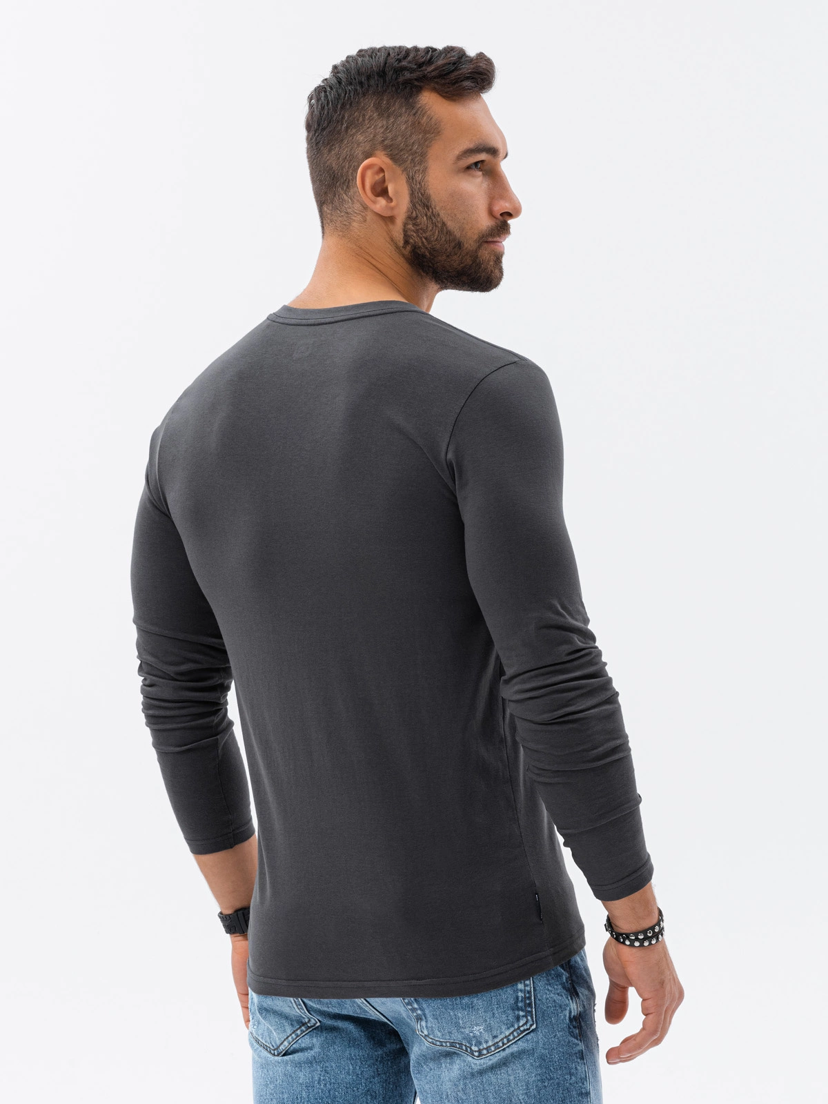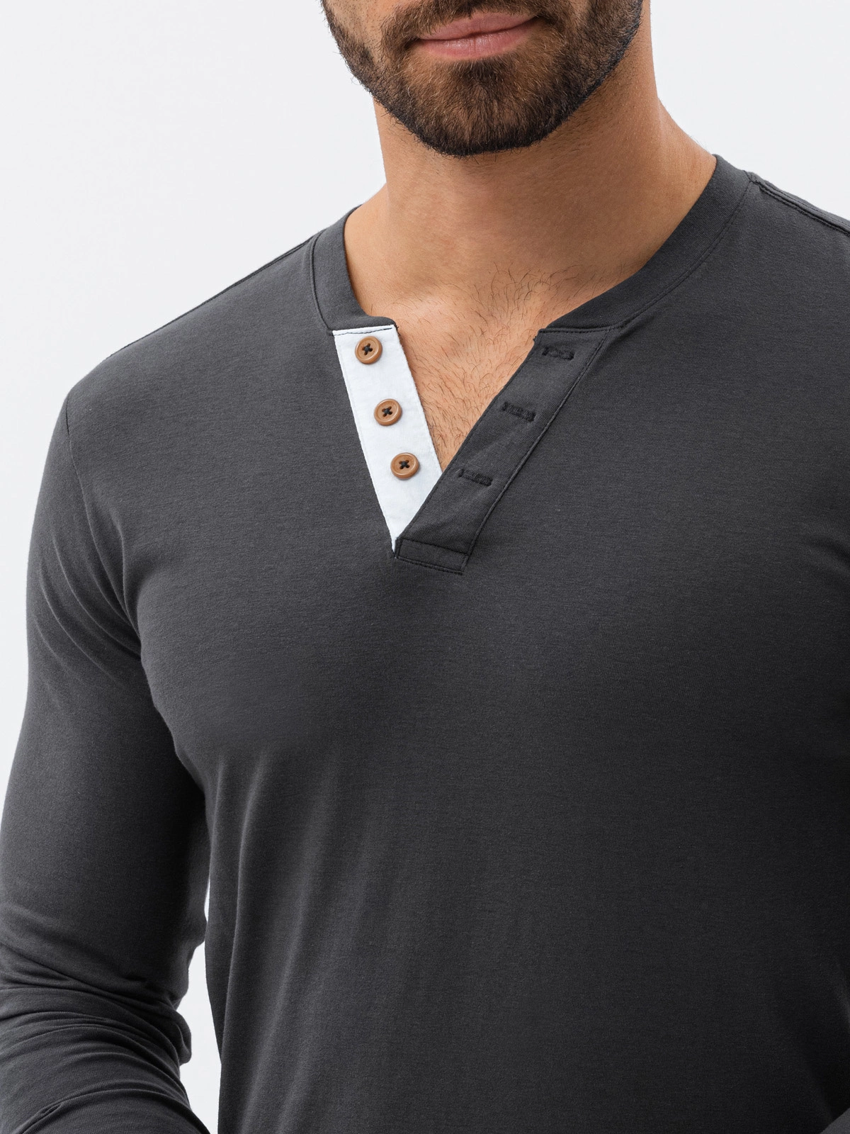 Longsleeve męski z guzikami - grafitowy V9 L133