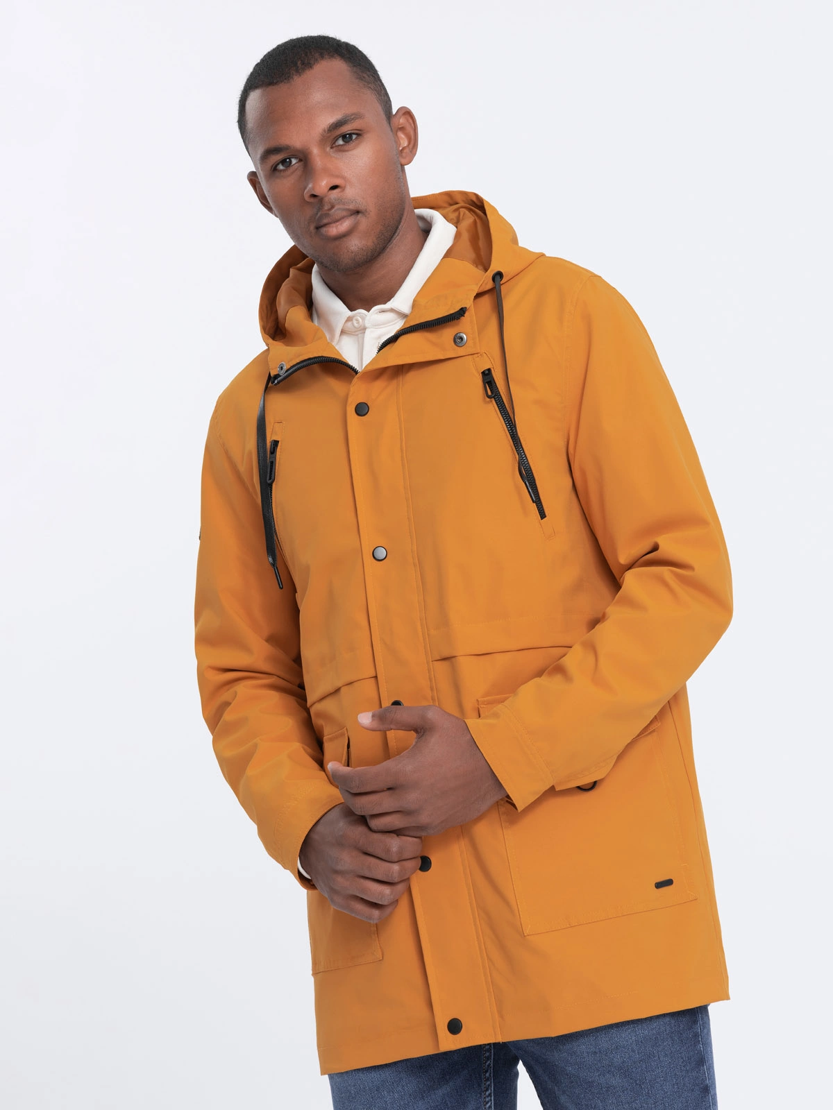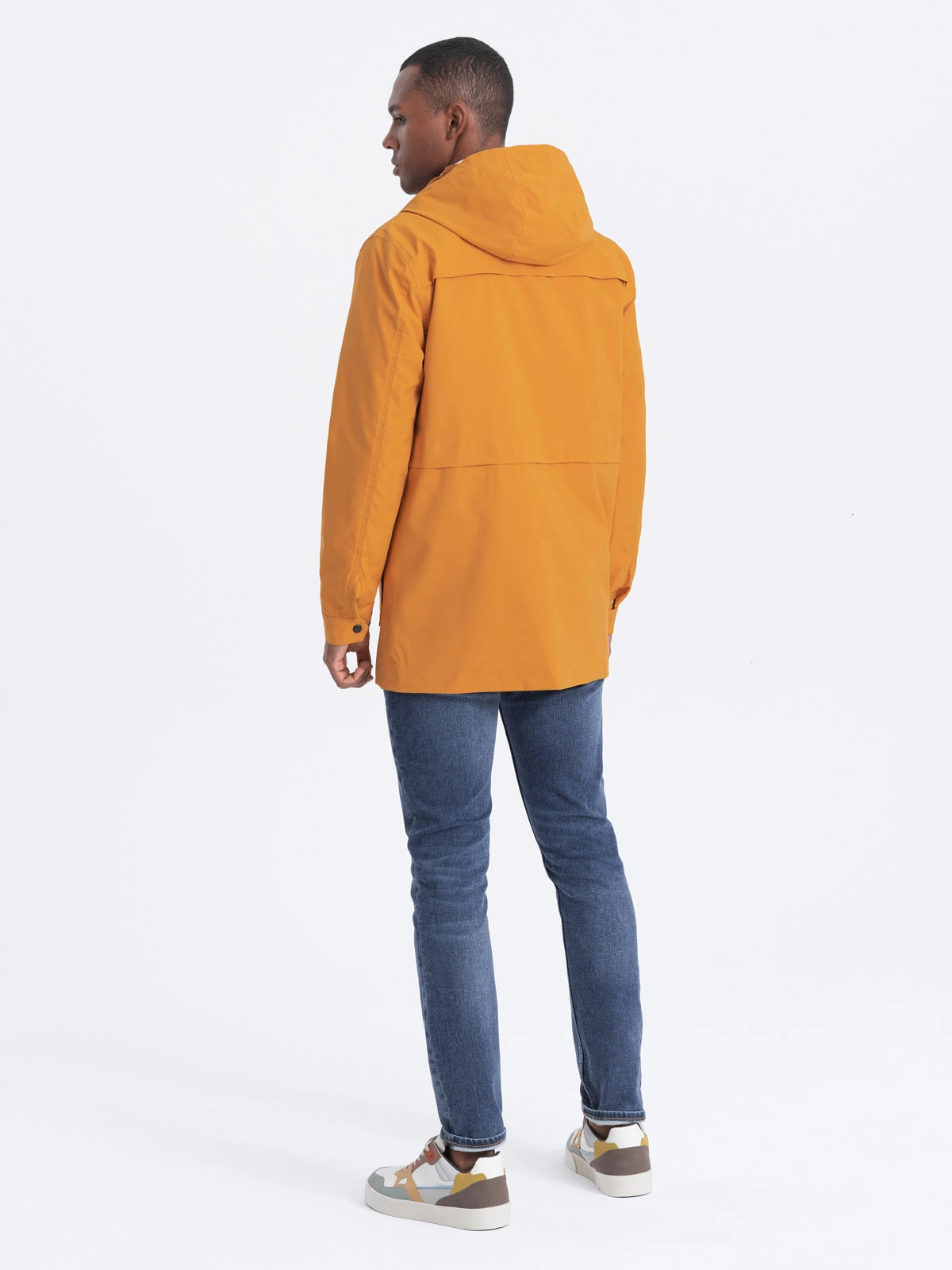 - Kurtka męska parka z kieszeniami cargo - musztardowa V3 OM-JANP-22FW-004