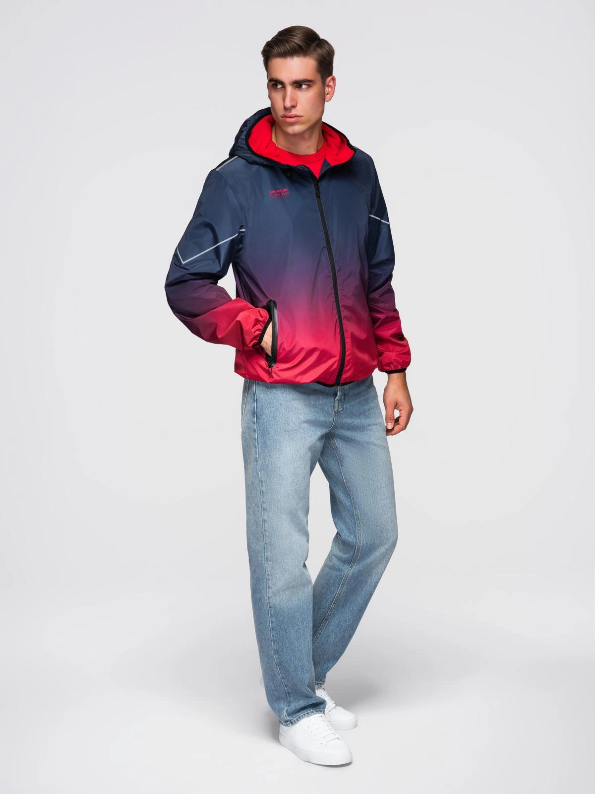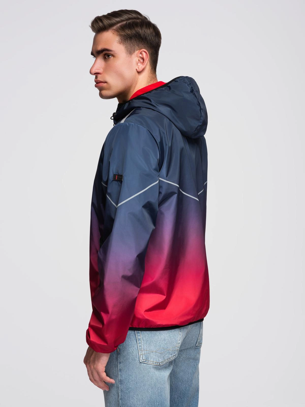 Sportowa męska kurtka ombre z odblaskami i polarową podszewką – granatowo-czerwona V3 OM-JANP-0105