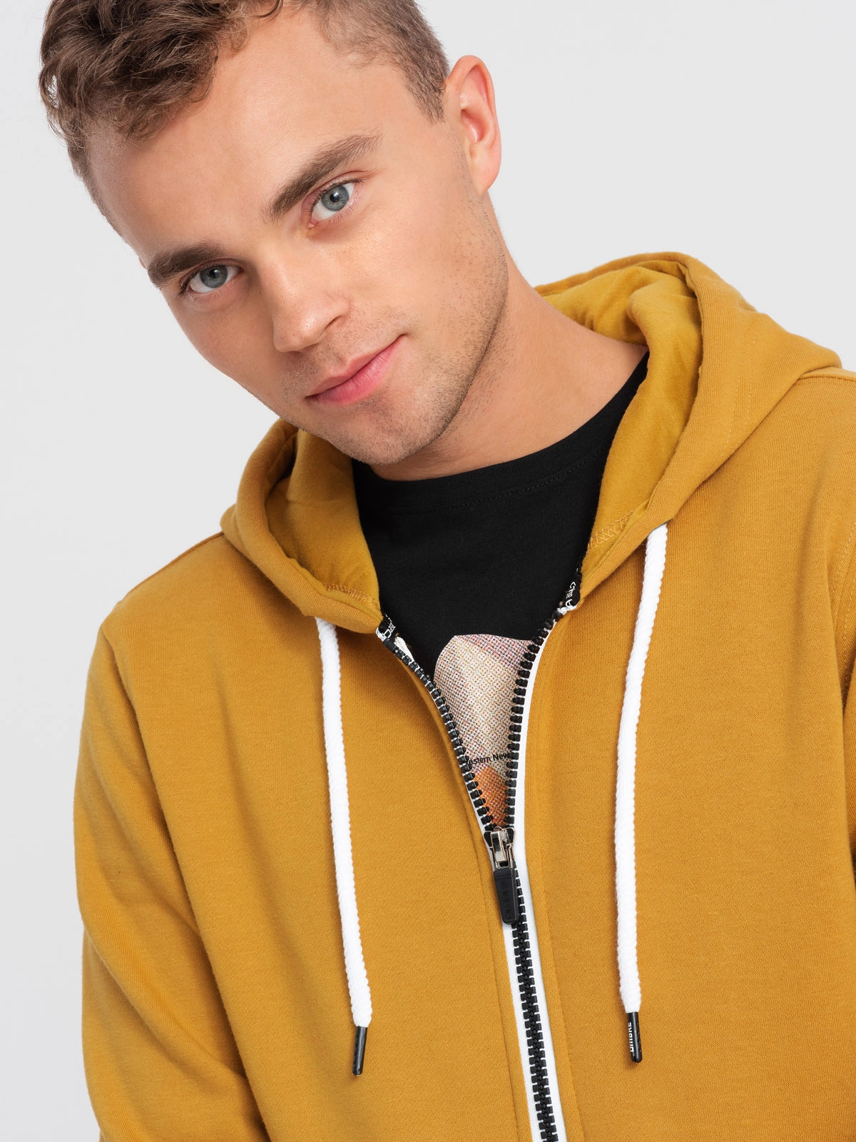 Bluza męska rozpinana z kapturem BASIC - musztardowa V4 OM-SSBZ-0118