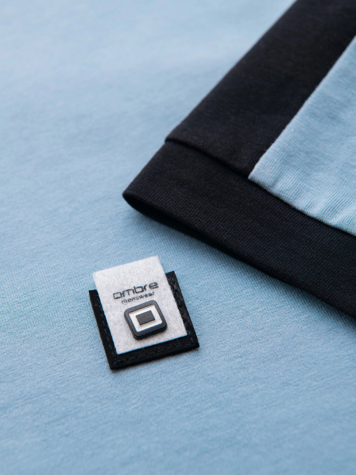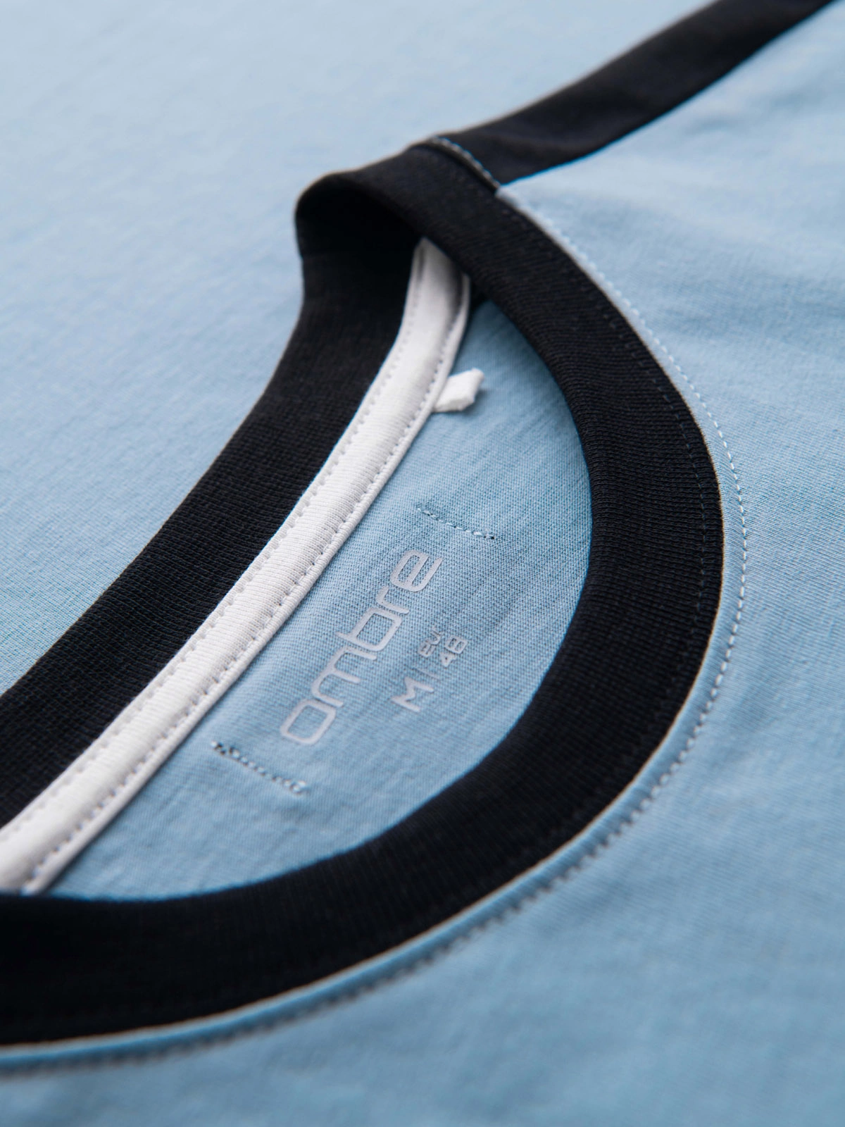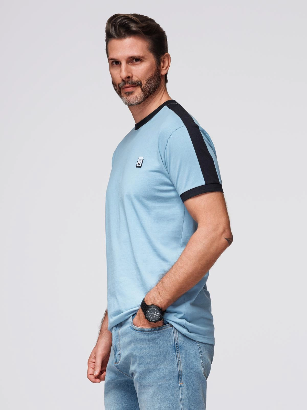- Męski t-shirt z kontrastowymi lampasami – jasnoniebieski V3 OM-TSCT-0115