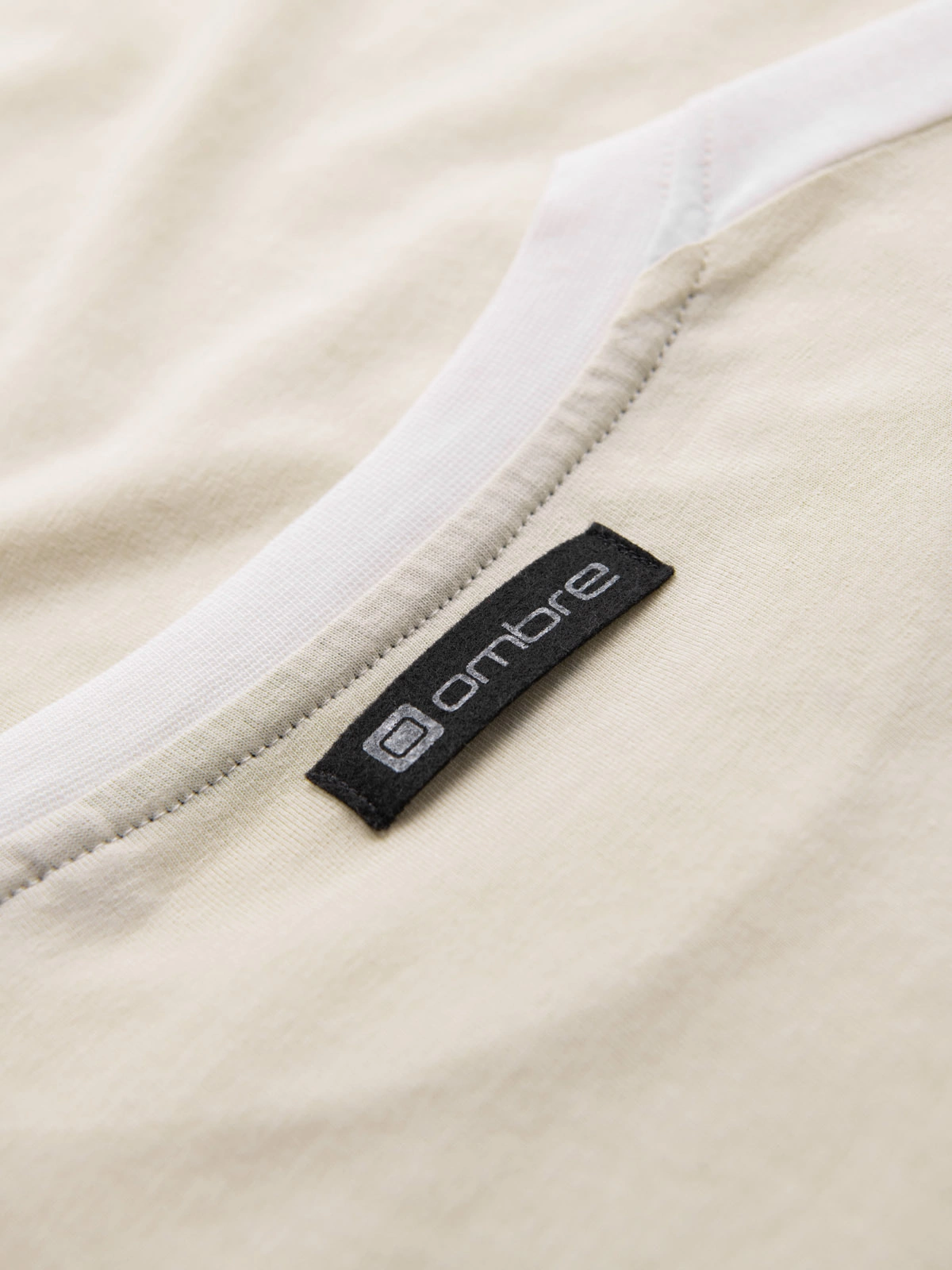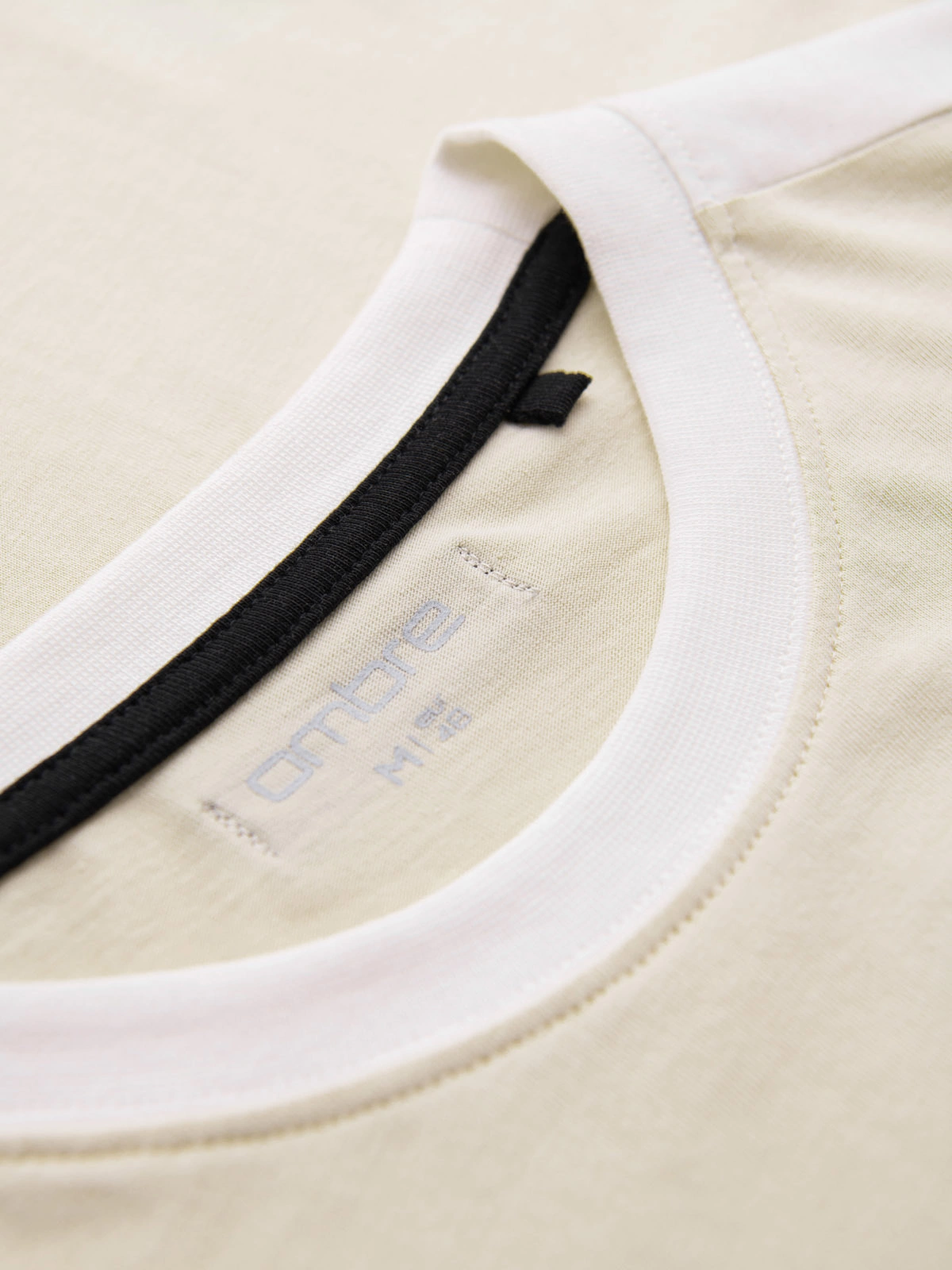 Męski t-shirt z kontrastowymi lampasami – kremowy V7 OM-TSCT-0115
