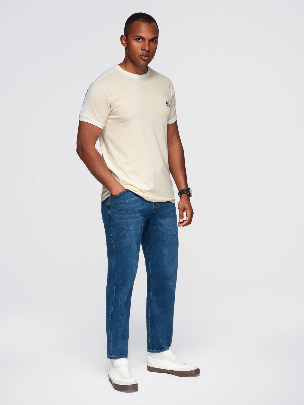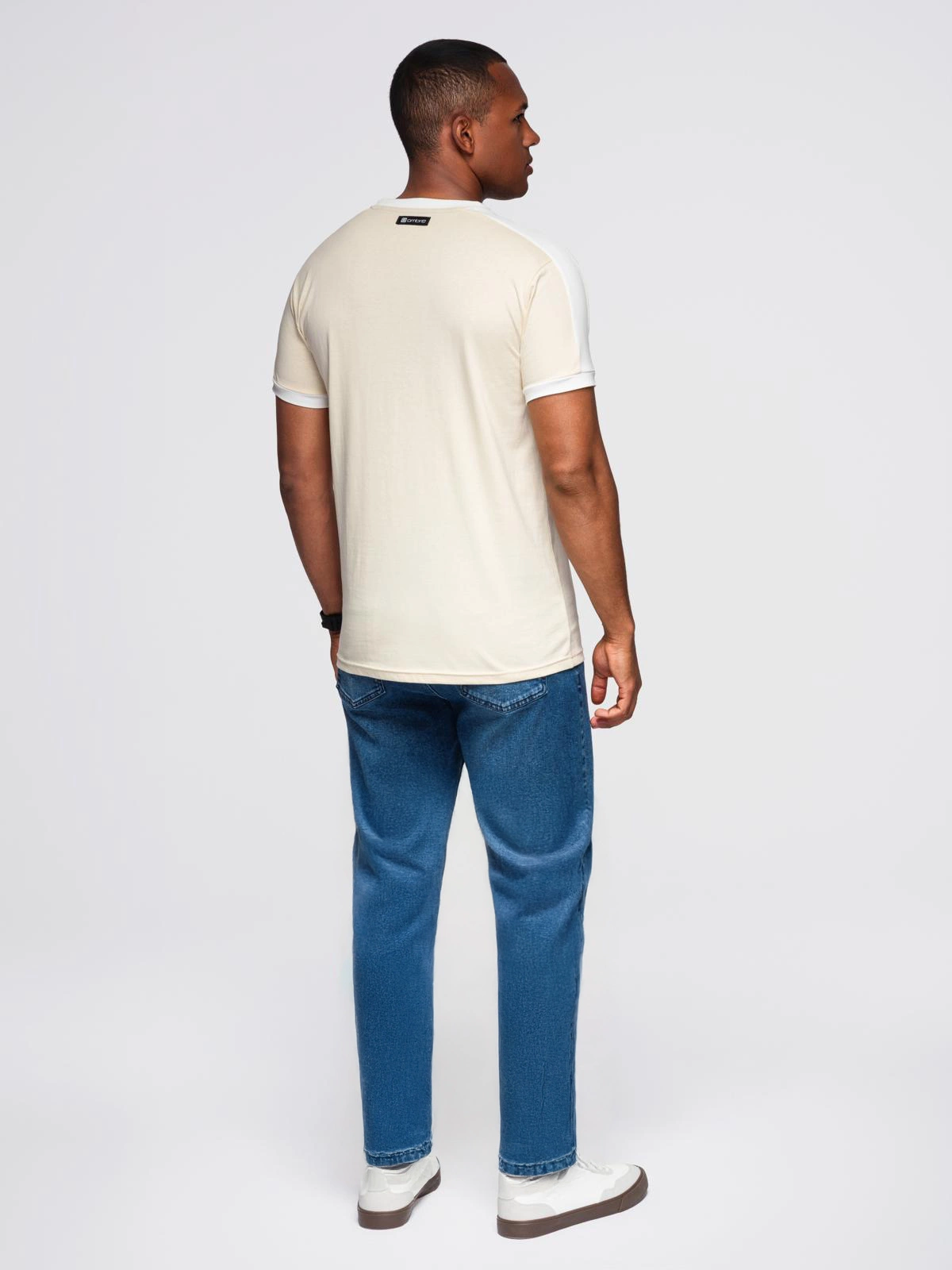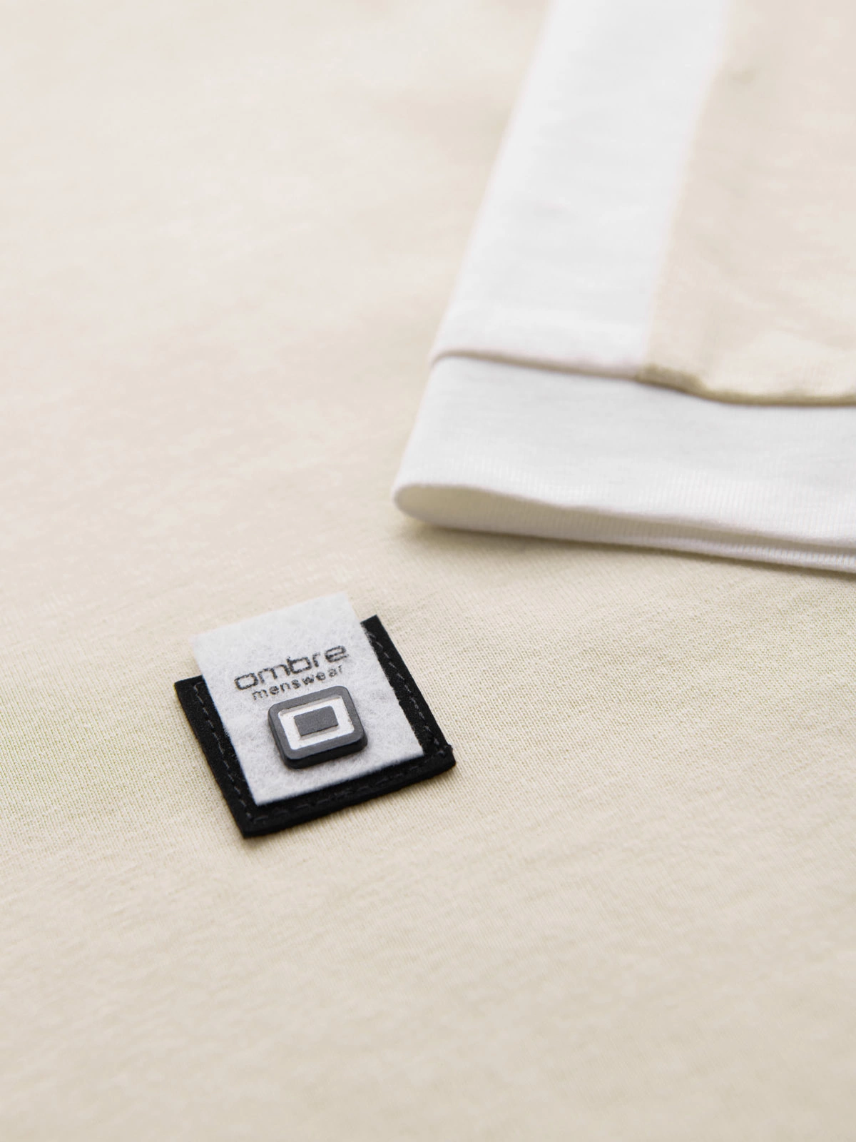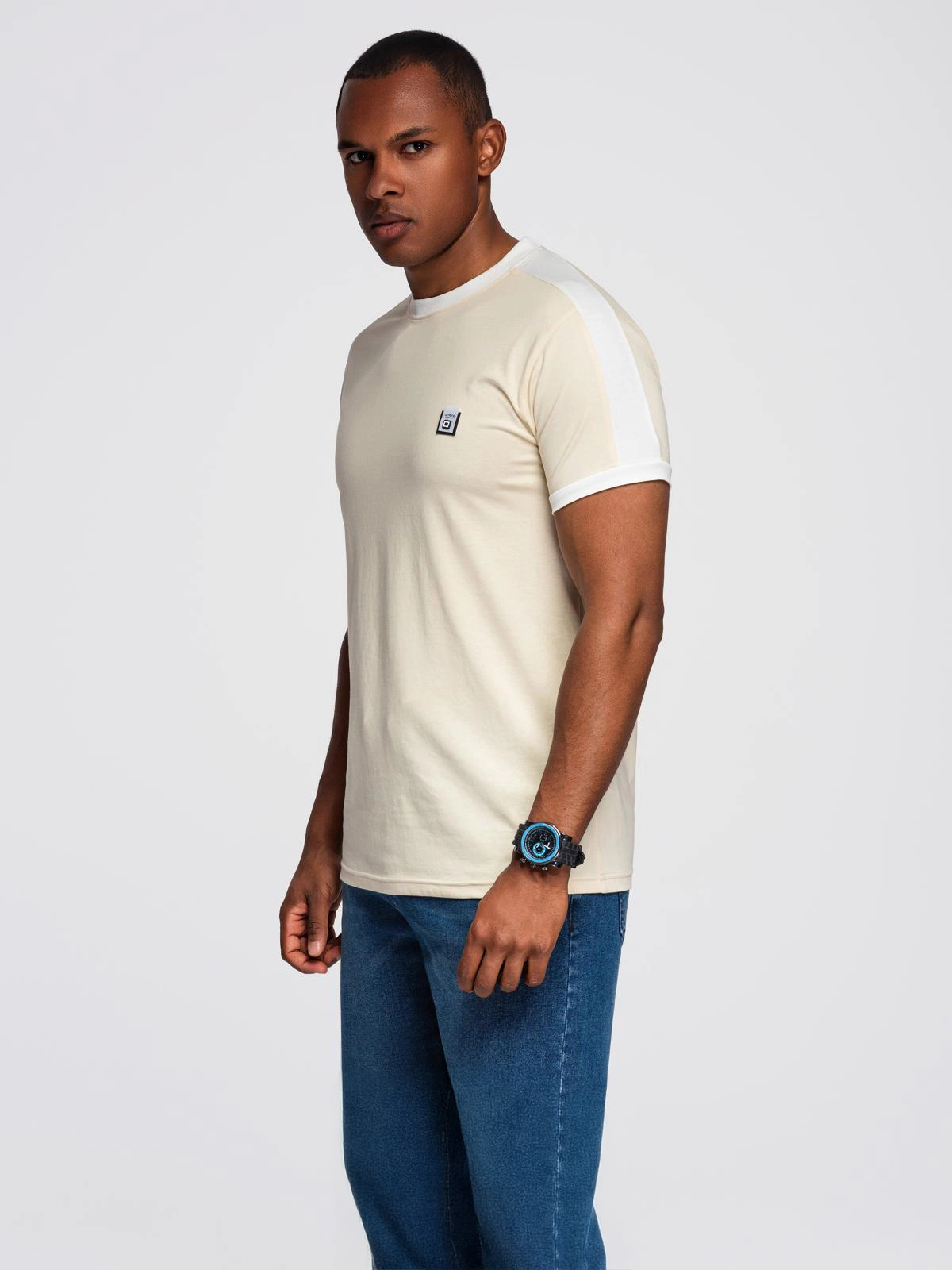 - Męski t-shirt z kontrastowymi lampasami – kremowy V7 OM-TSCT-0115