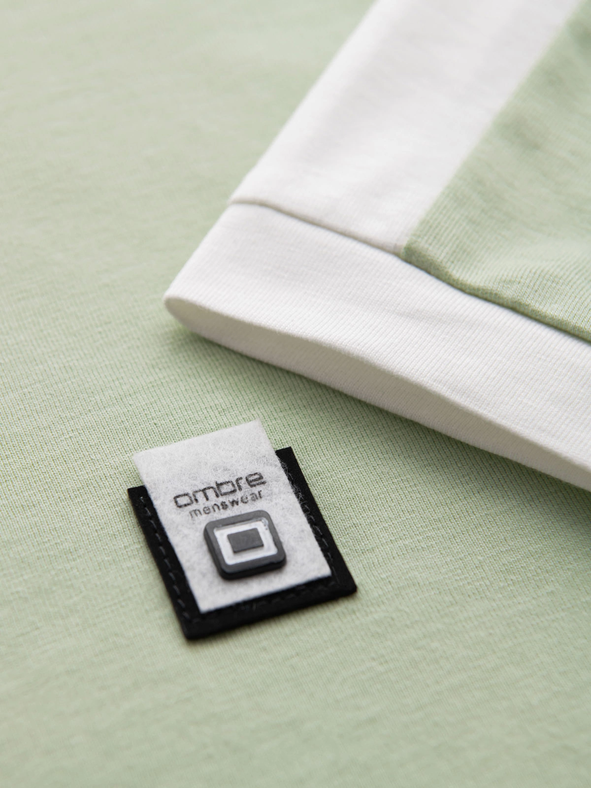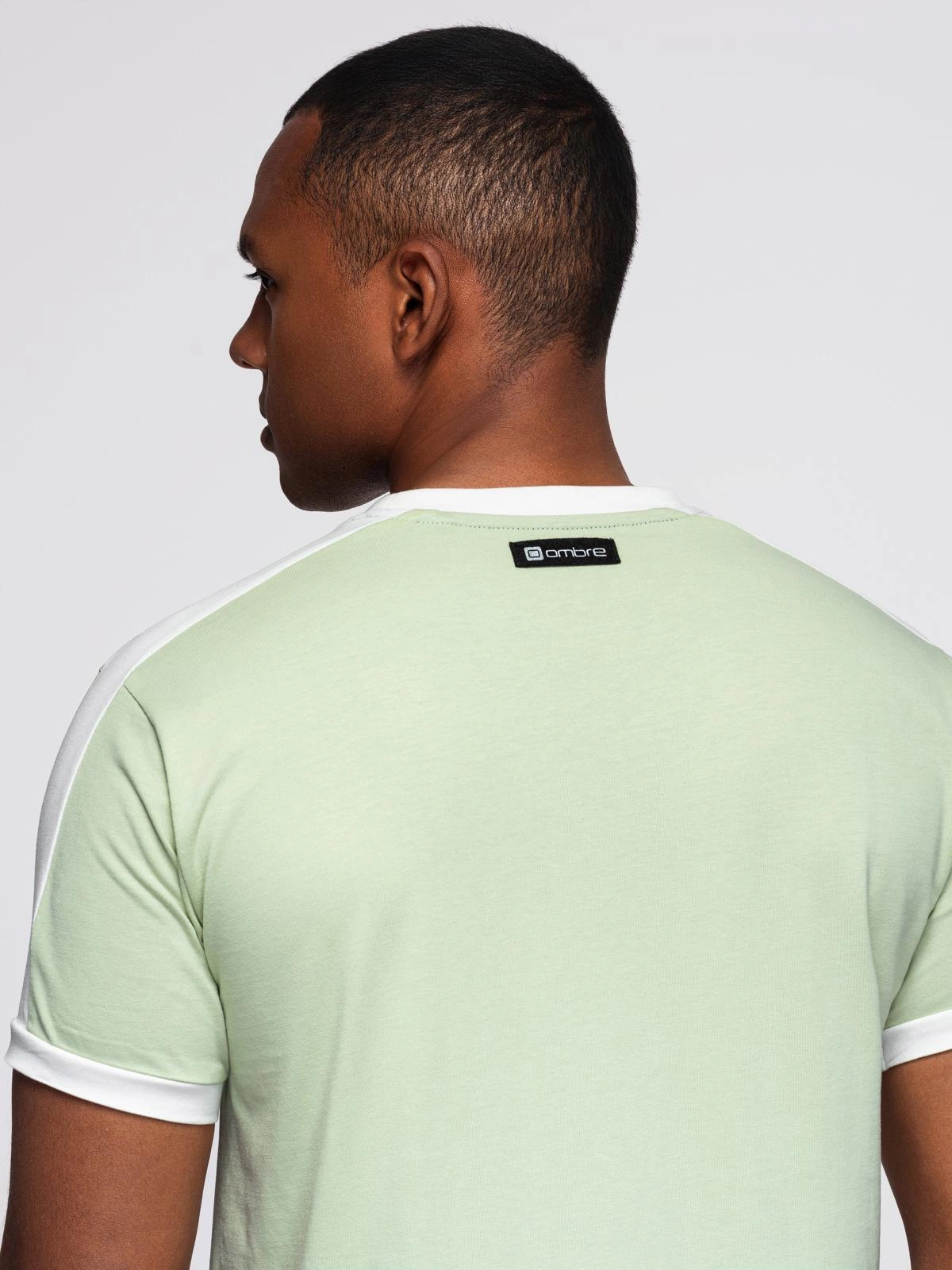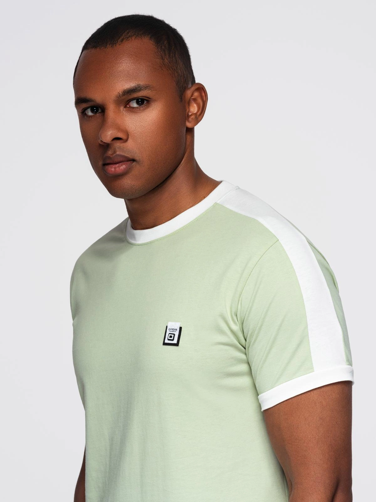 - T-shirt męski z kontrastowymi lampasami – pistacjowy V9 OM-TSCT-0115