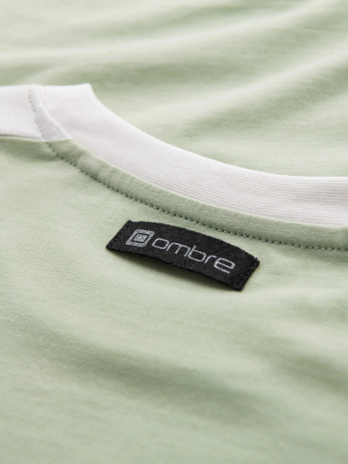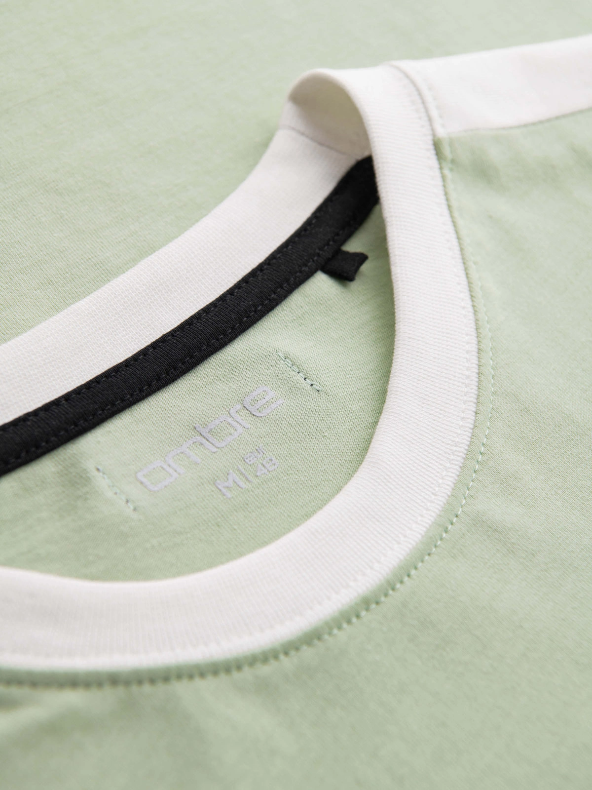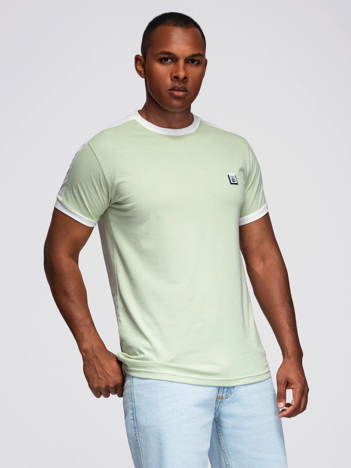 - T-shirt męski z kontrastowymi lampasami – pistacjowy V9 OM-TSCT-0115