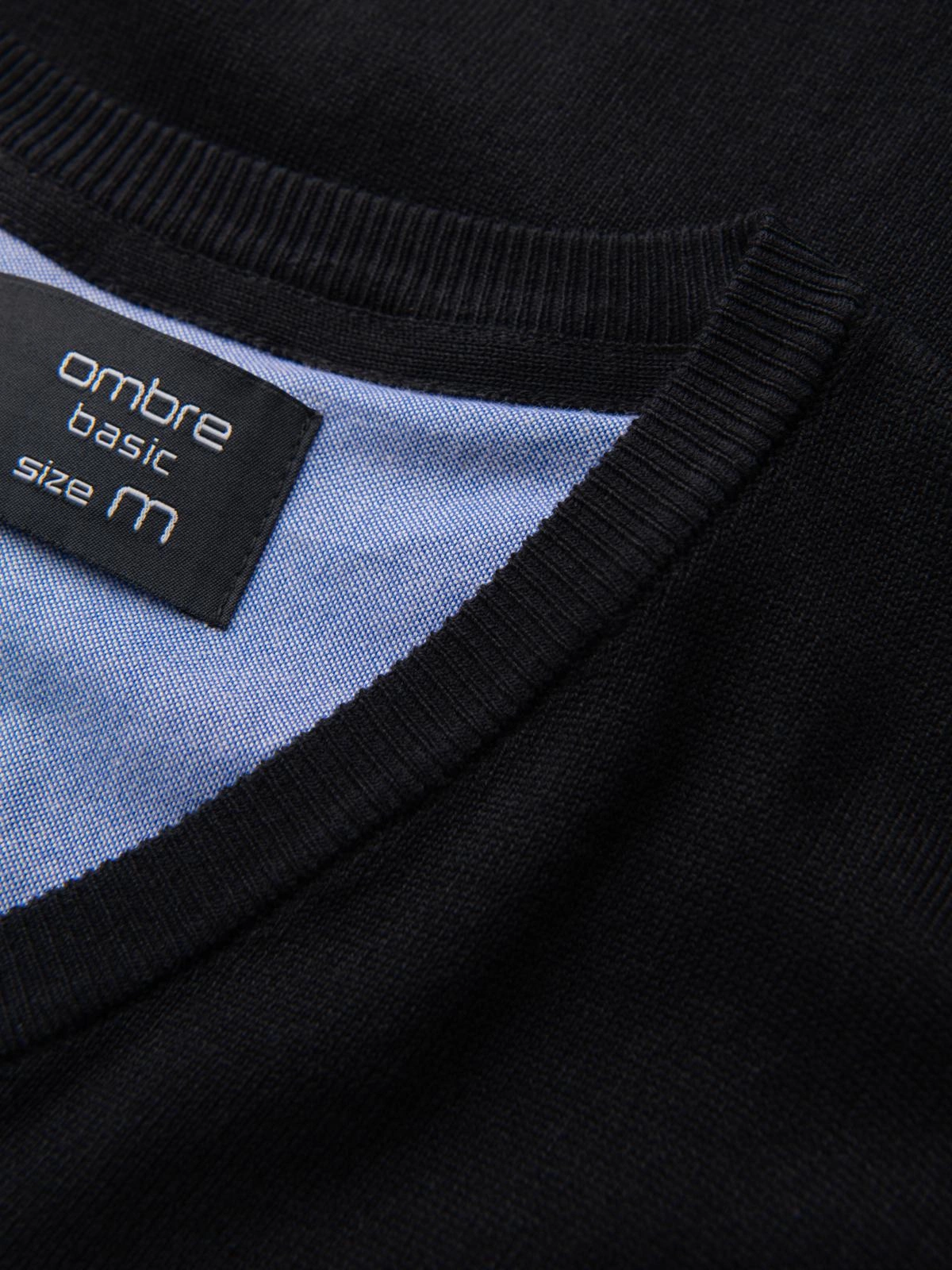 Elegancki sweter męski V-neck BASIC z wiskozą – czarny V1 OM-SWBS-0107