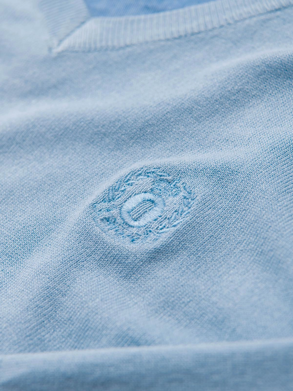 Opinie o Elegancki męski sweter V-neck BASIC z wiskozą –jasnoniebieski V10 OM-SWBS-0107