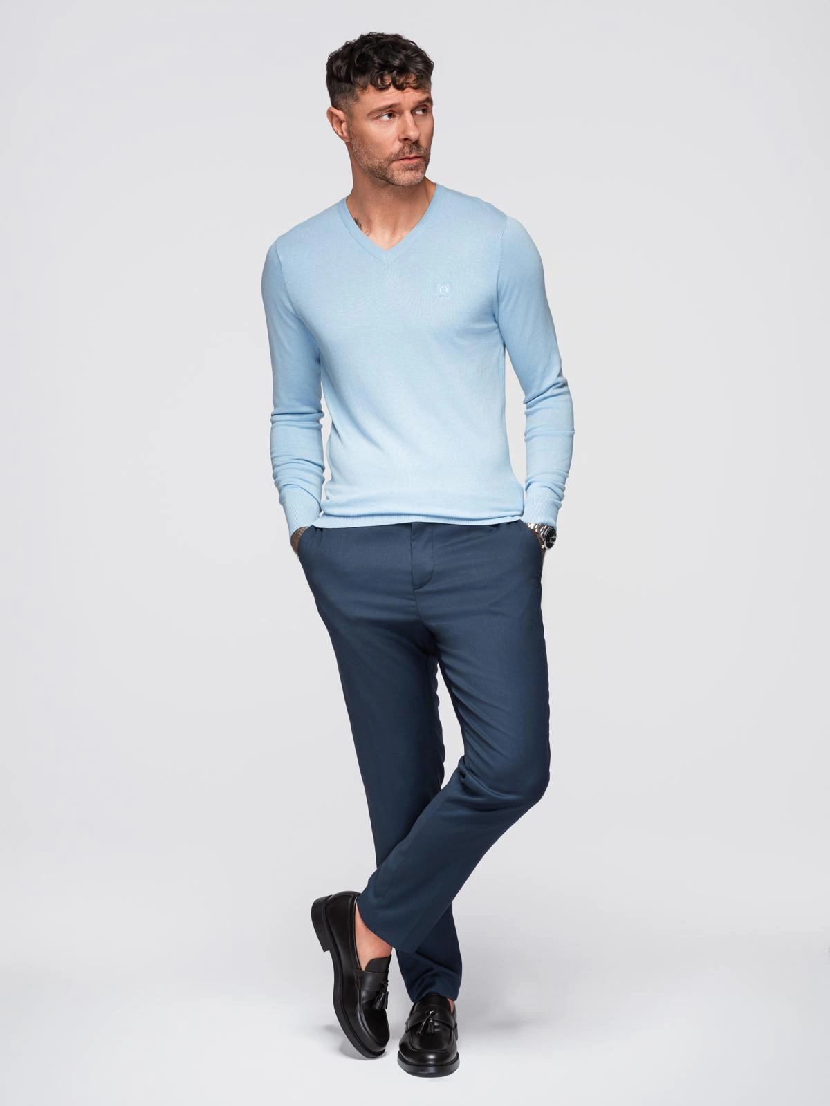 Elegancki męski sweter V-neck BASIC z wiskozą –jasnoniebieski V10 OM-SWBS-0107