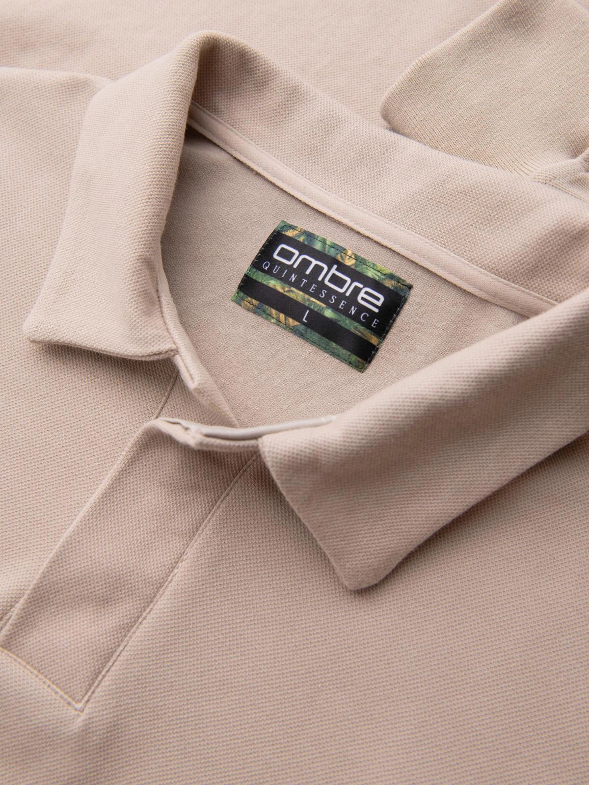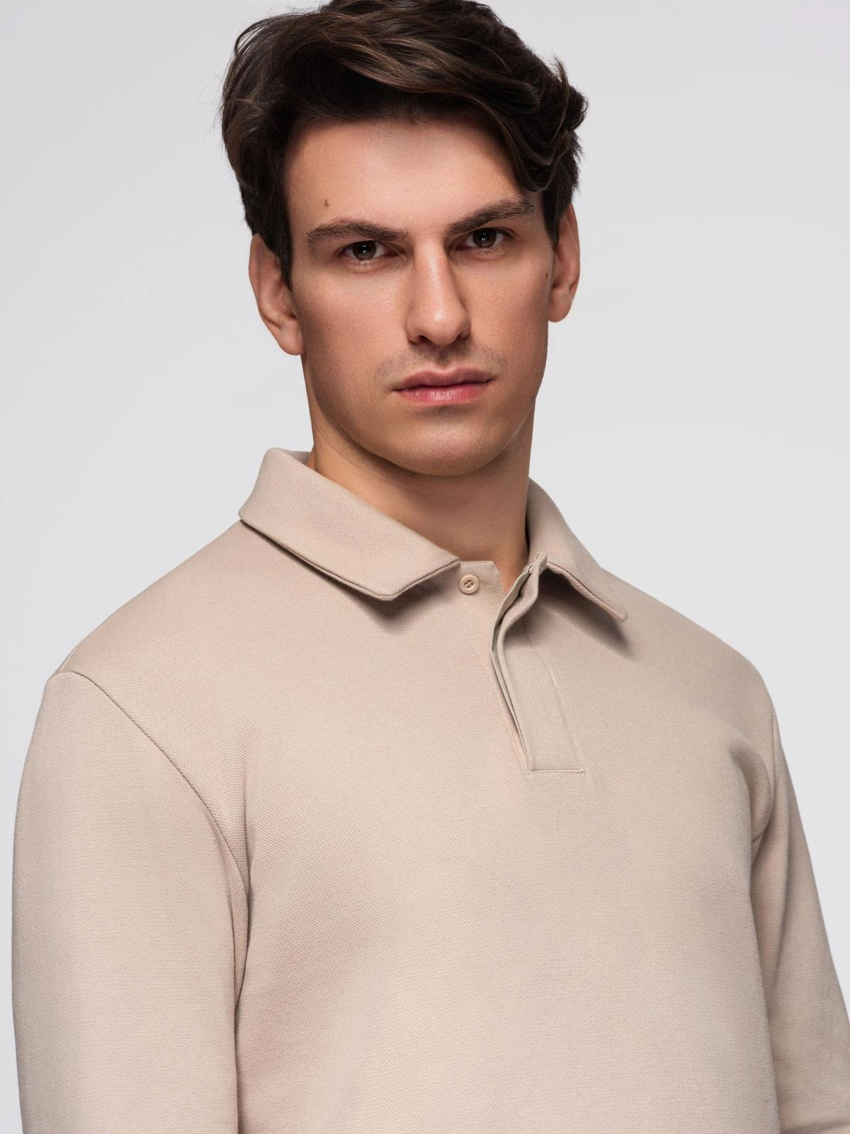 Bluza męska z kołnierzykiem polo ze strukturalnej dzianiny - beżowa V2 OM-SSNZ-0149