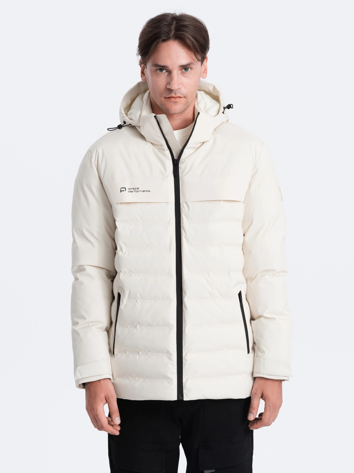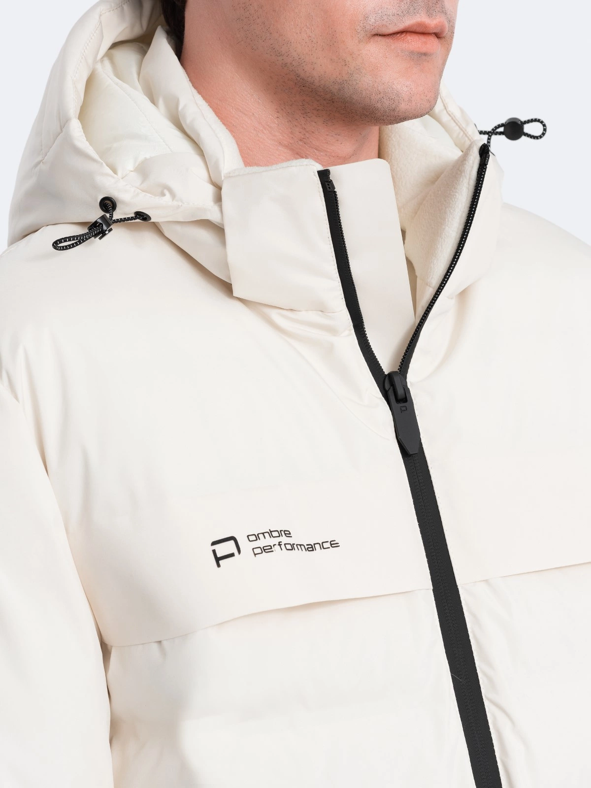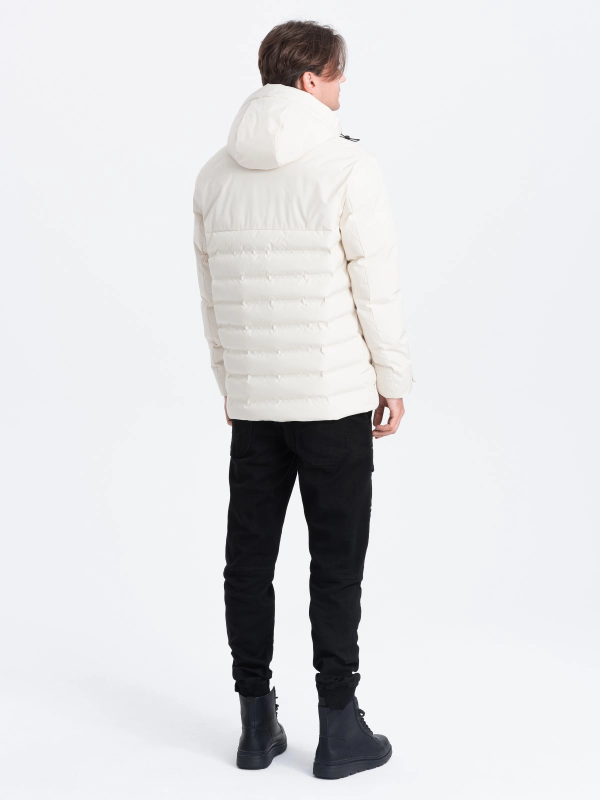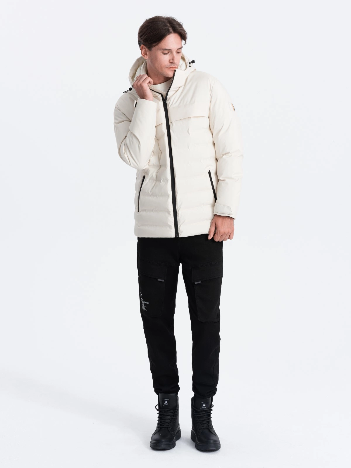 - Zimowa kurtka męska z odpinanym kapturem - kremowa V2 OM-JAHP-0150