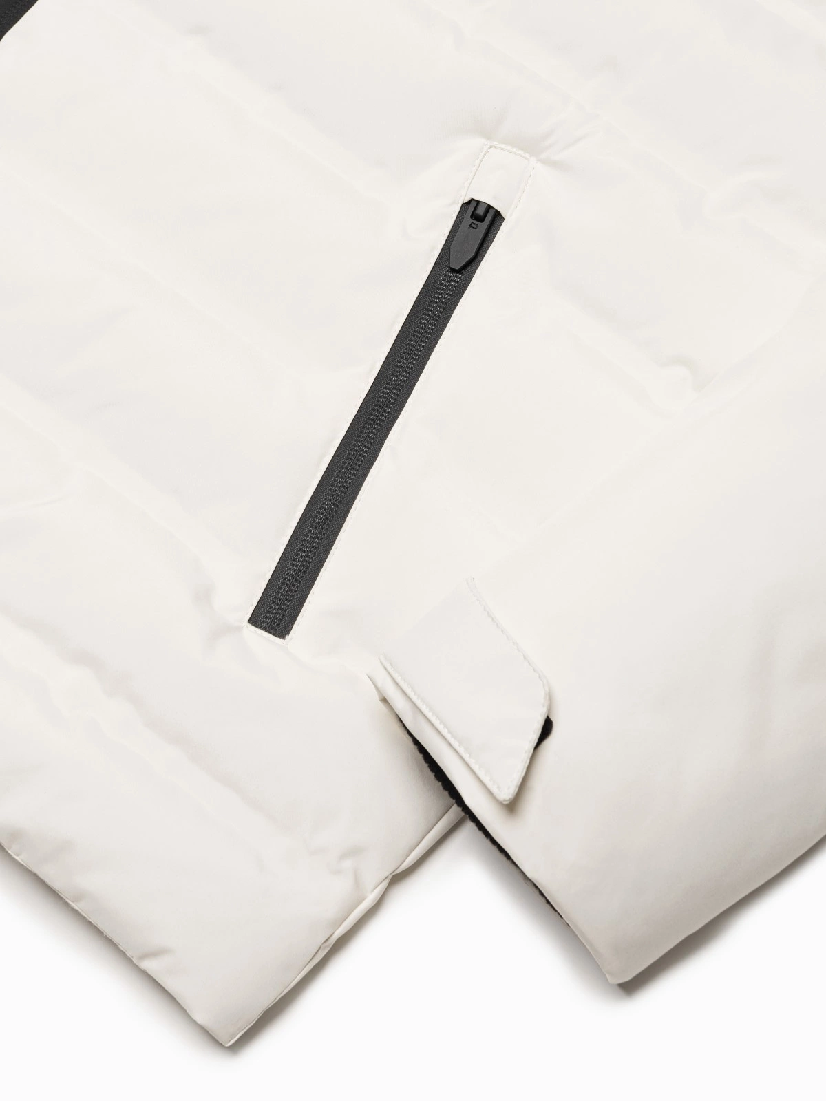 Zimowa kurtka męska z odpinanym kapturem - kremowa V2 OM-JAHP-0150