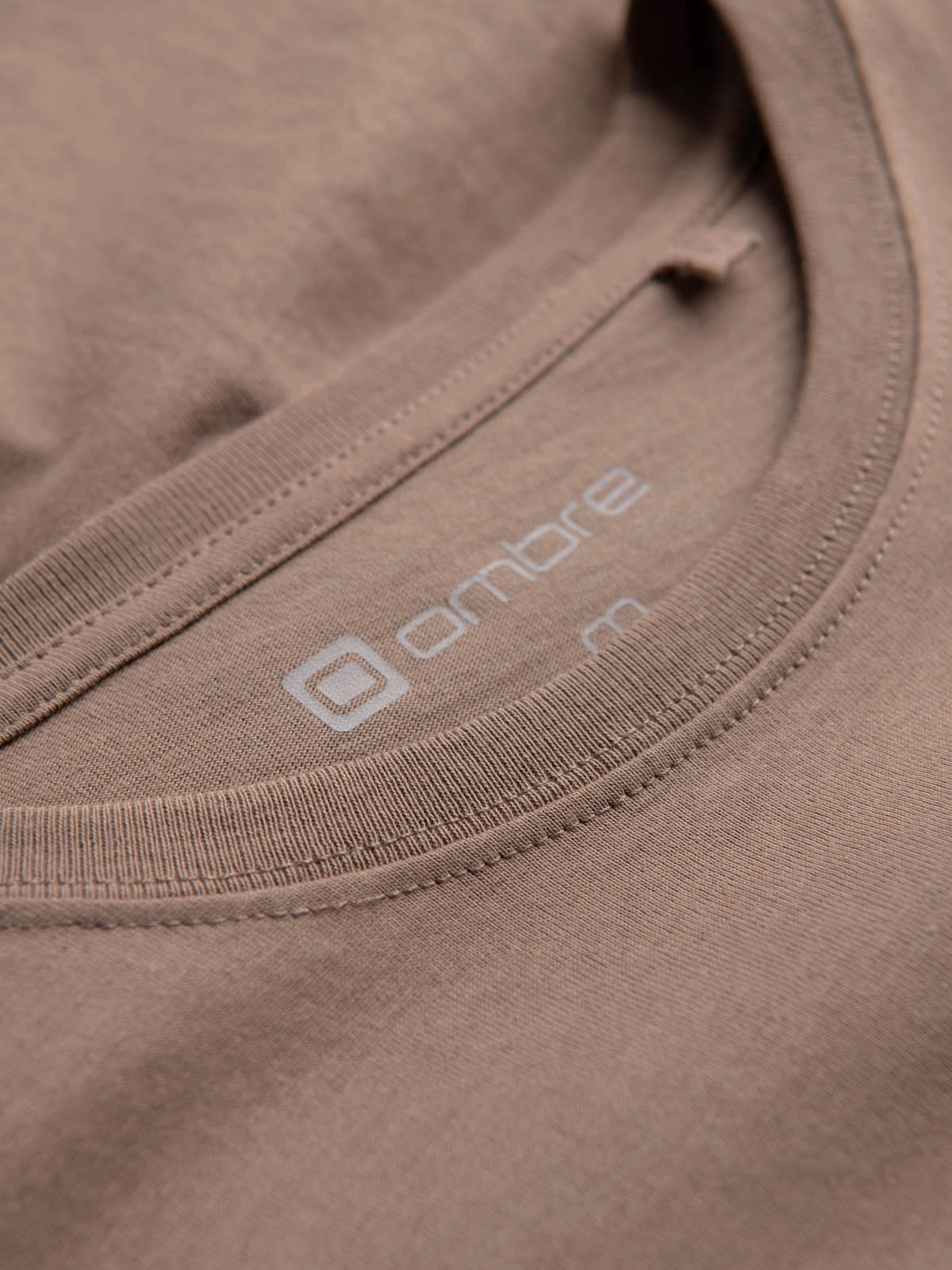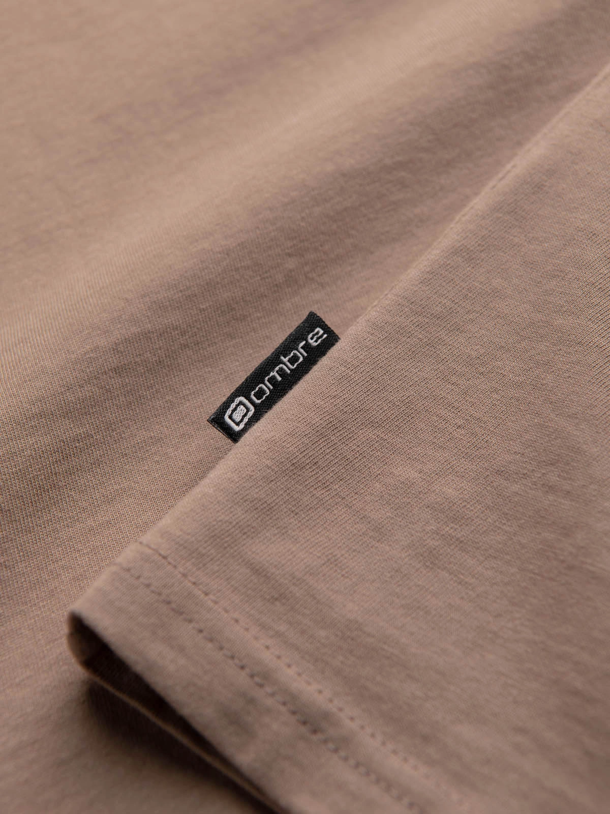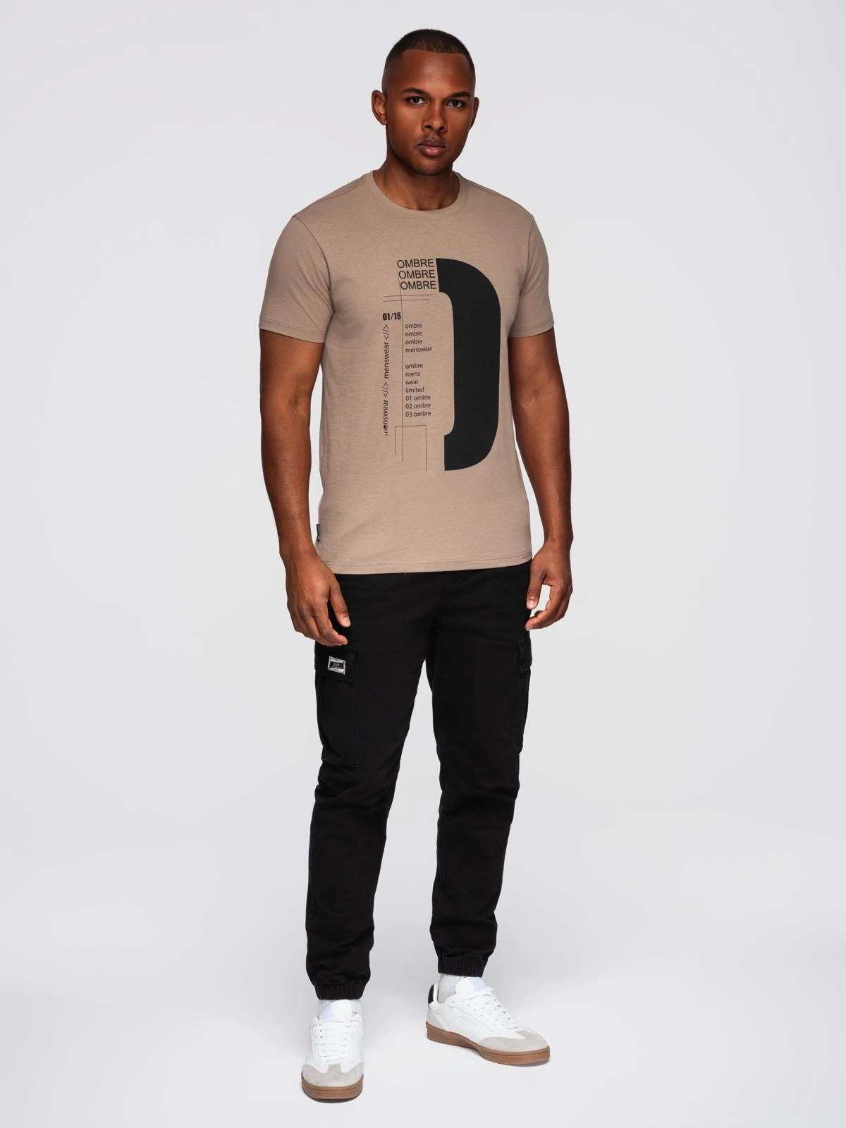 Koszulka męska z dużym printem – jasnobrązowa V2 OM-TSPT-0166