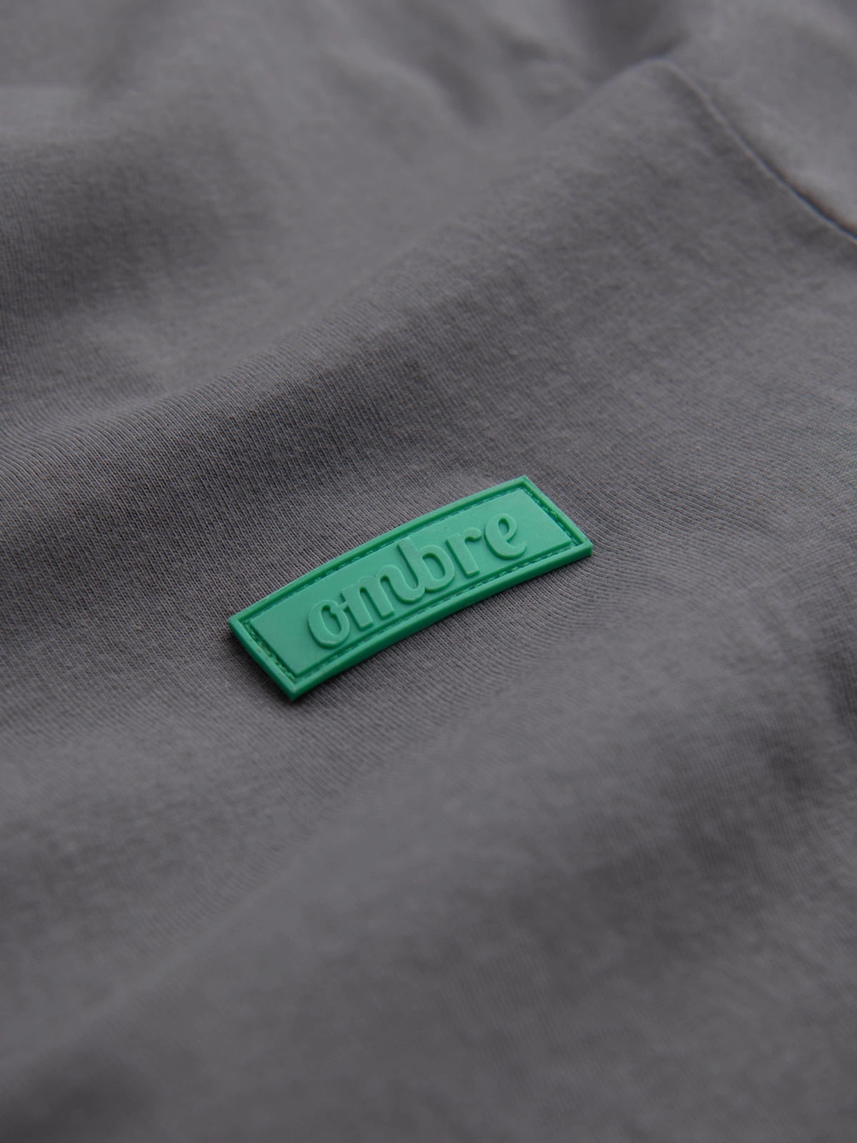 Bawełniany męski t-shirt z zieloną naszywką na piersi – szary V1 OM-TSCT-0151