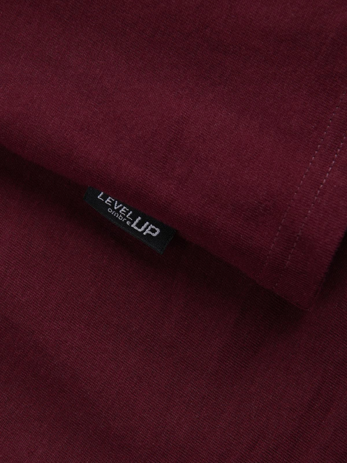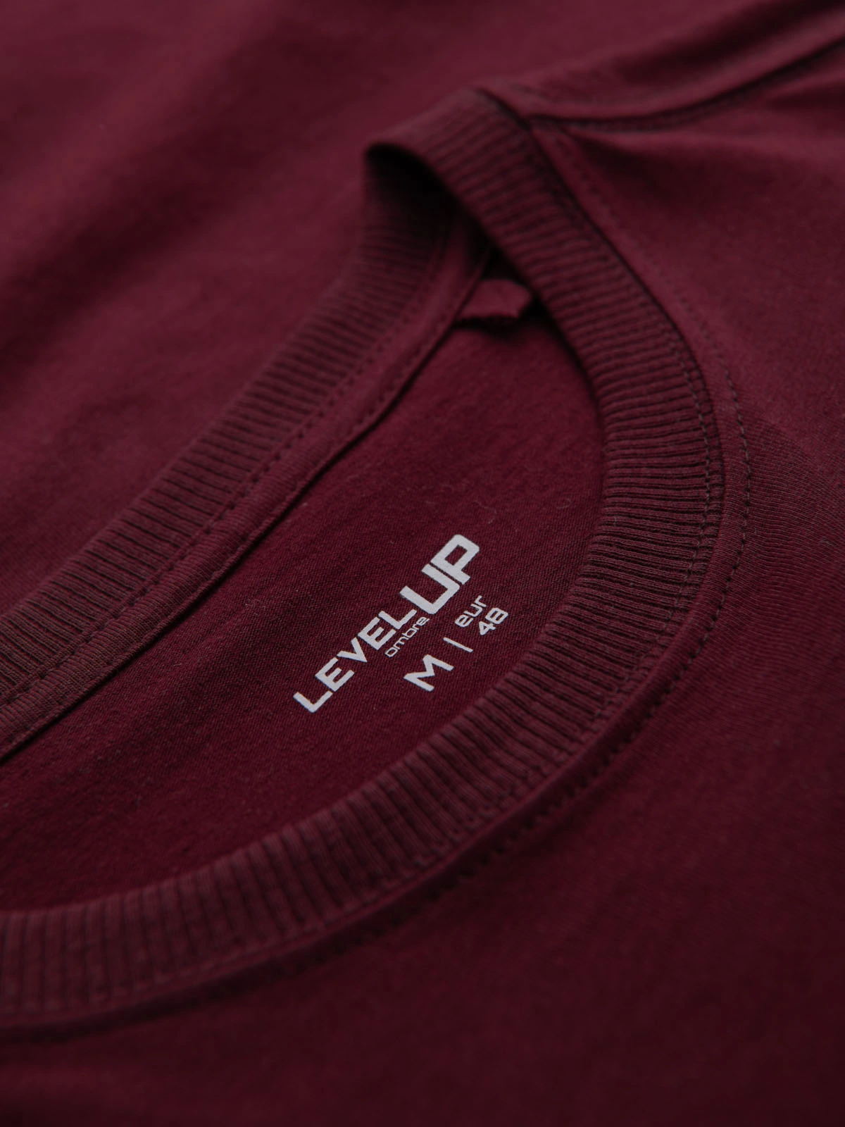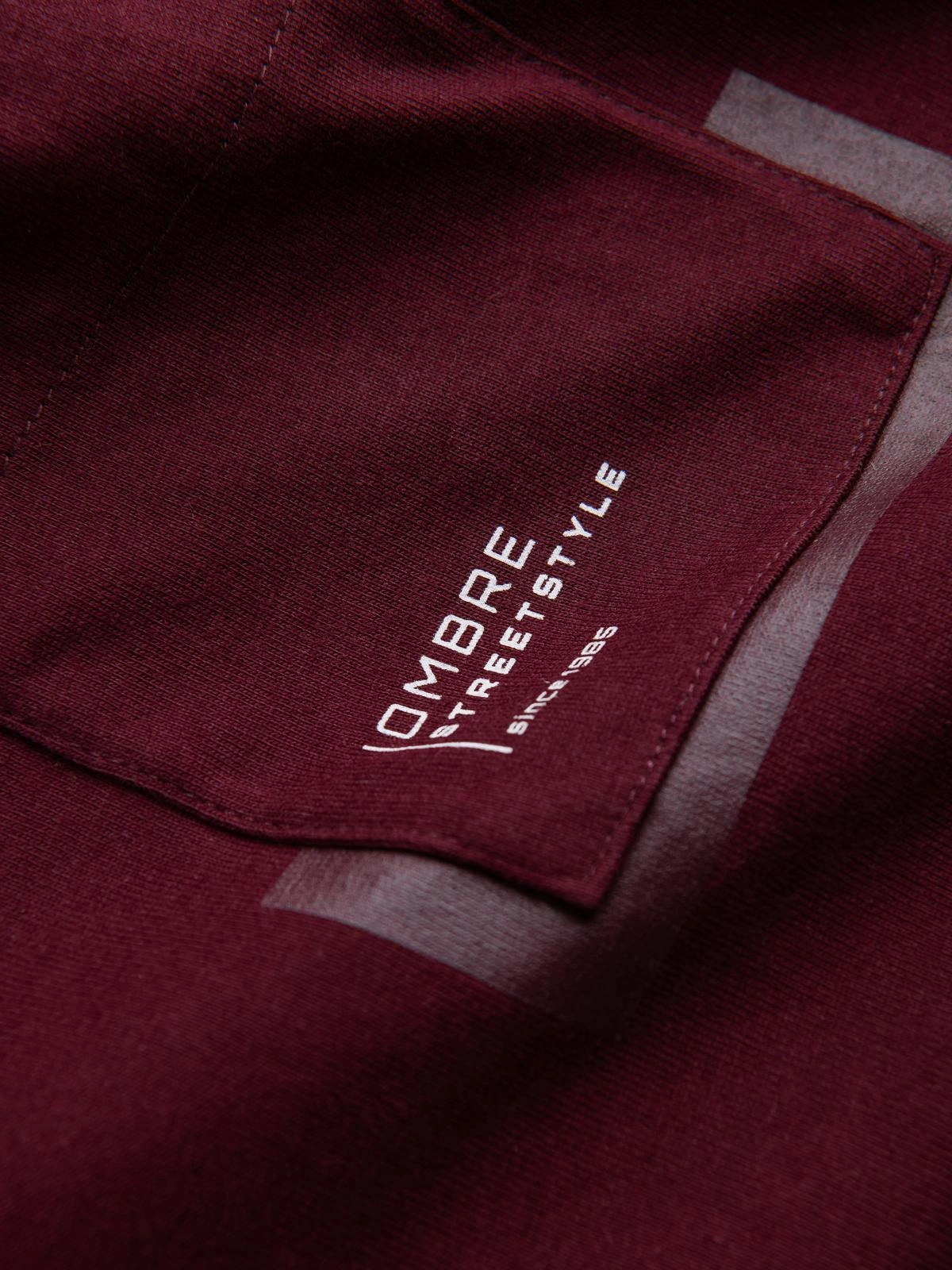 - Bawełniany męski t-shirt z nadrukiem na kieszonce – bordowy V2 OM-TSPT-0154
