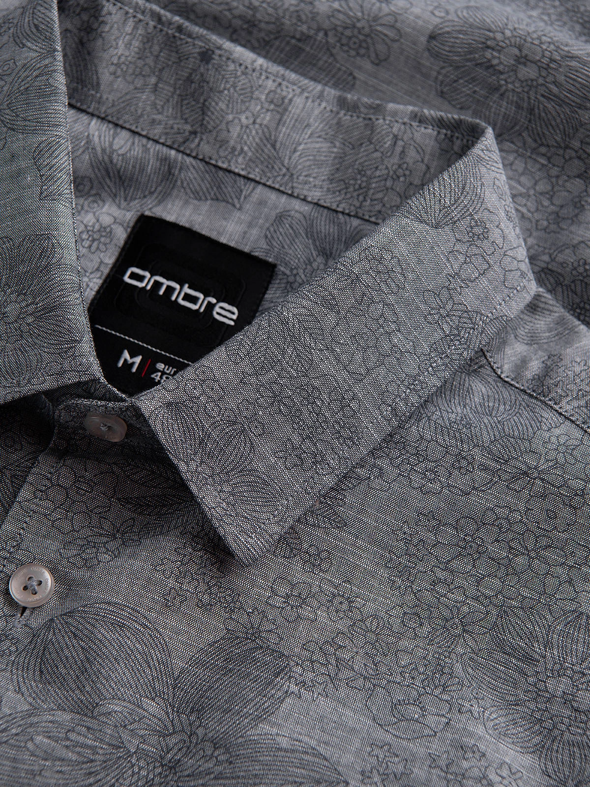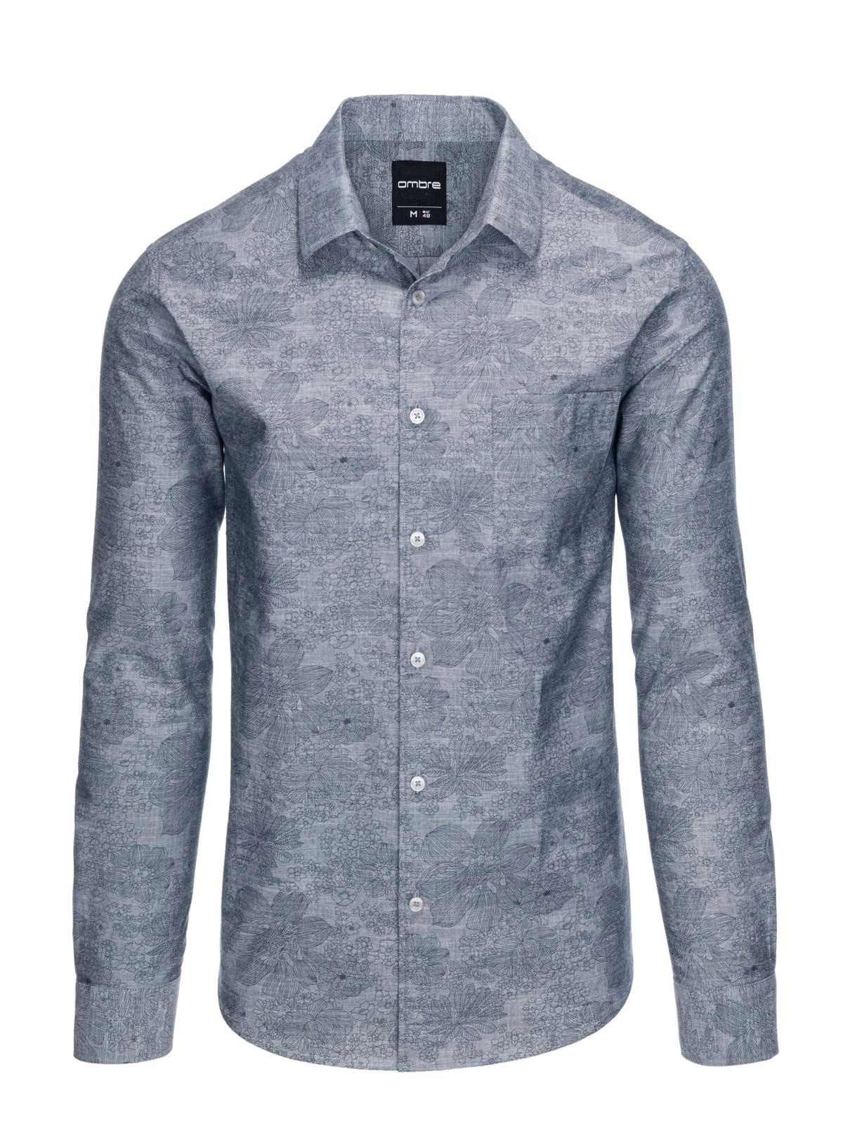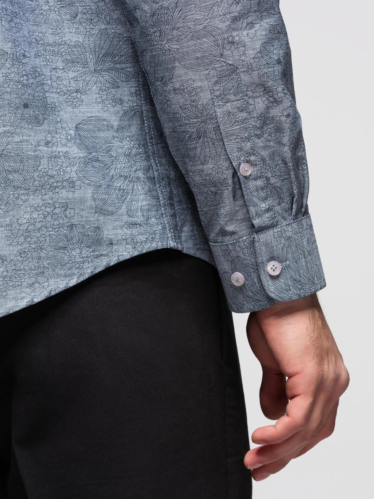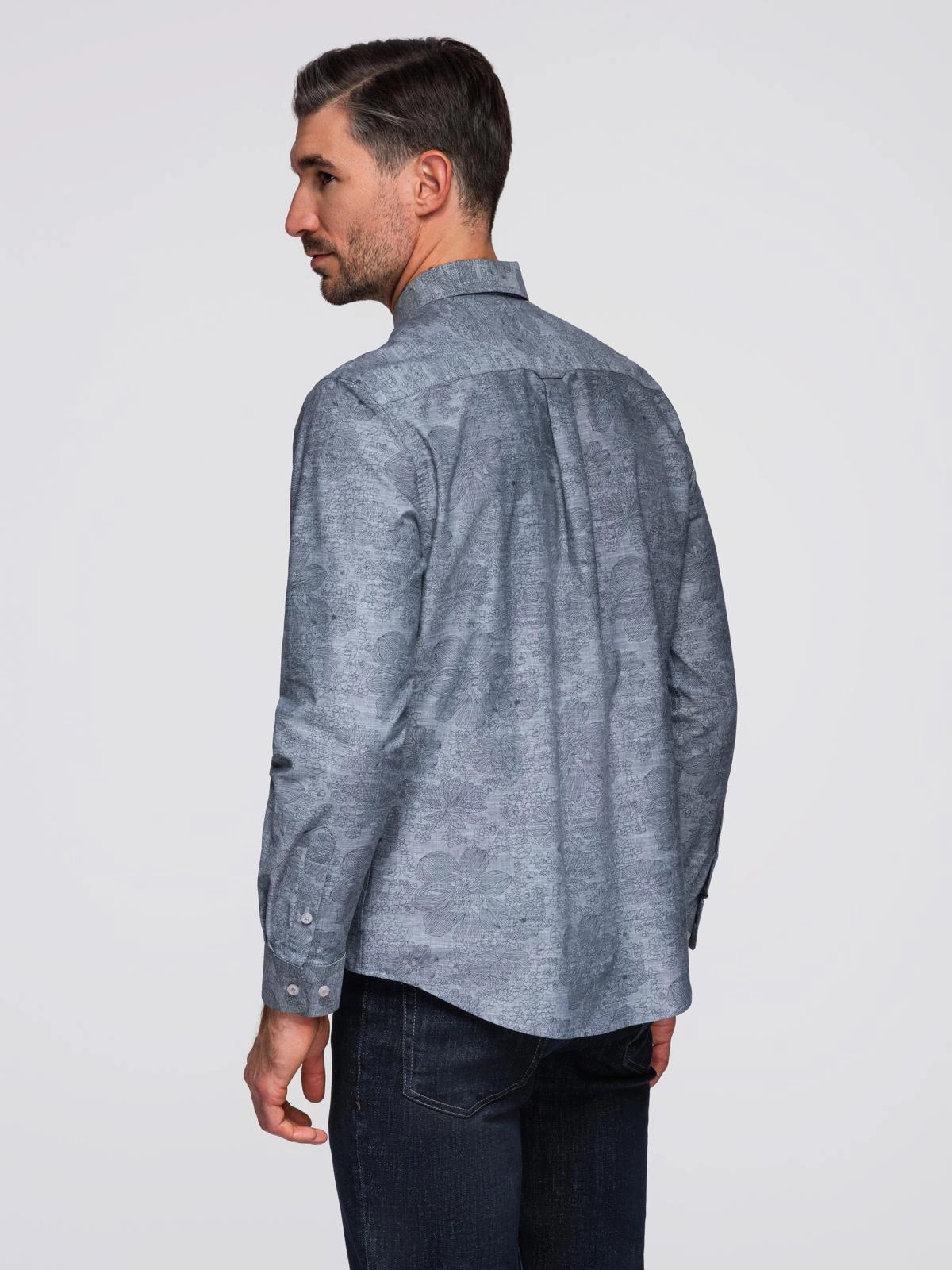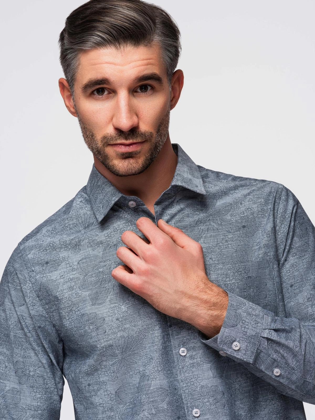 Klasyczna flanelowa męska koszula bawełniana w kwiaty - szara V3 OM-SHCS-0157