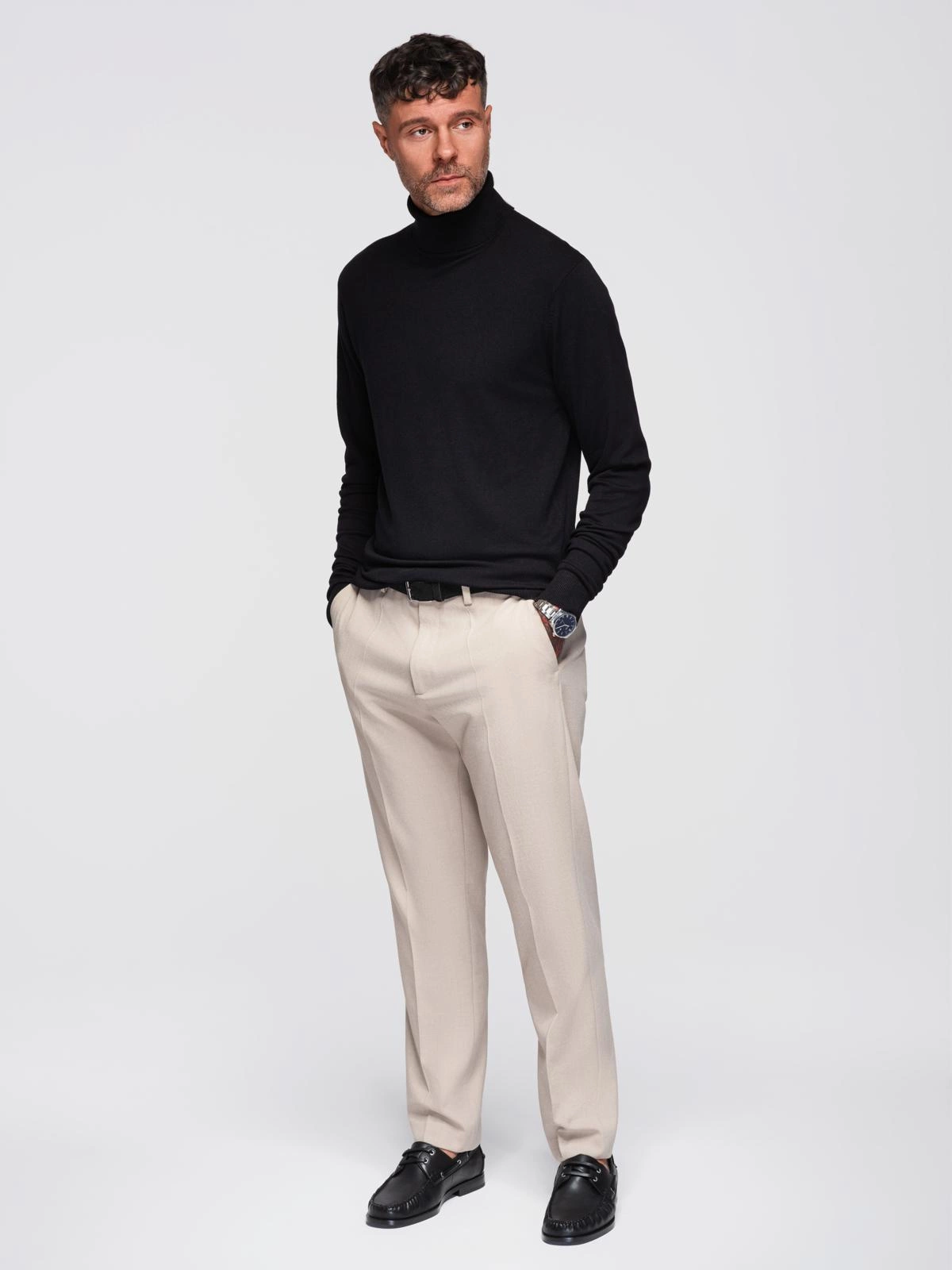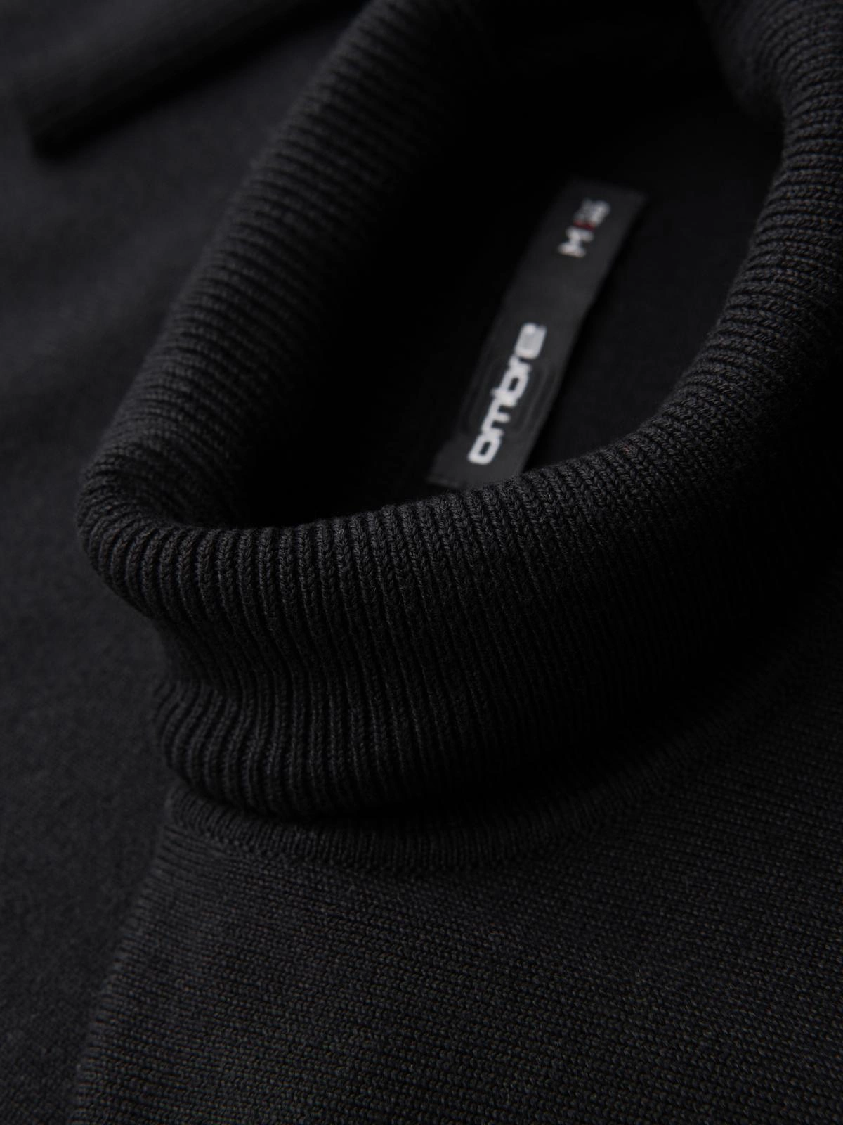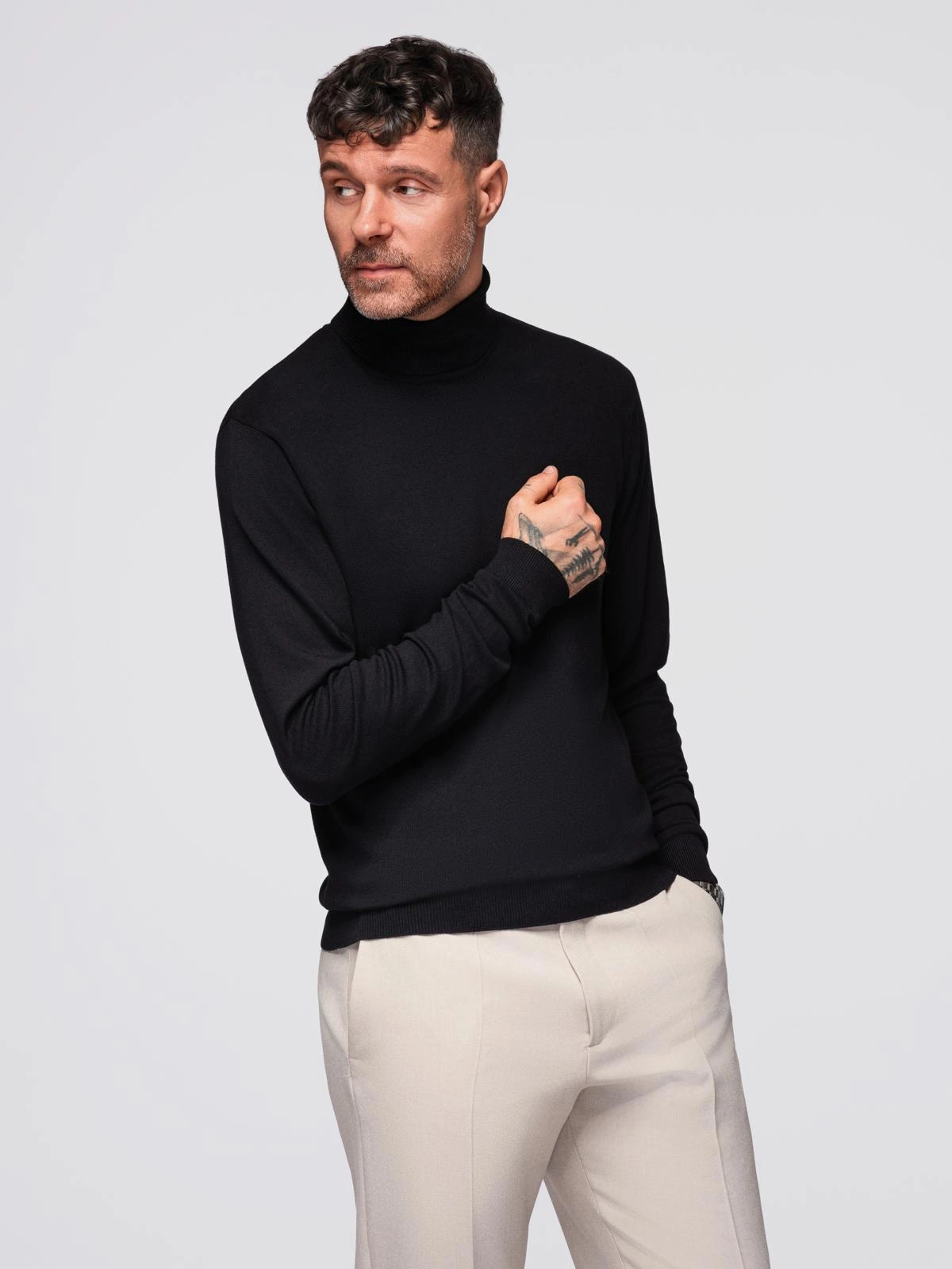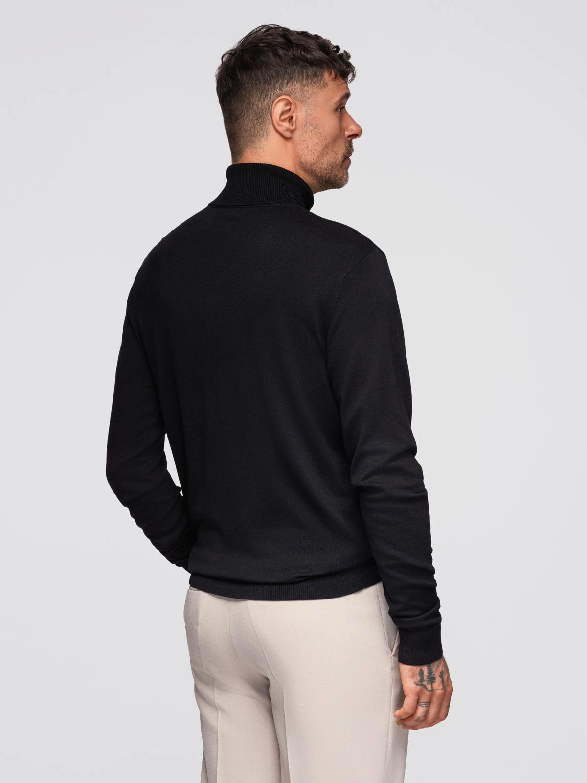 Męski dzianinowy dopasowany golf z wiskozą - czarny V1 OM-SWTN-0101