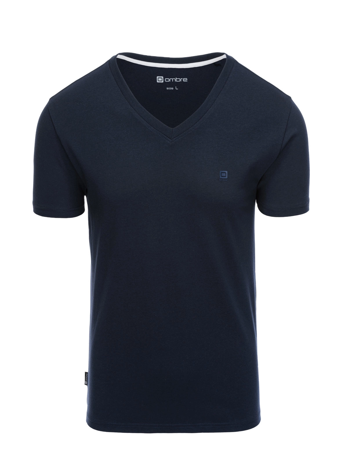 T-shirt męski V-NECK z elastanem - granatowy V2 OM-TSCT-0106