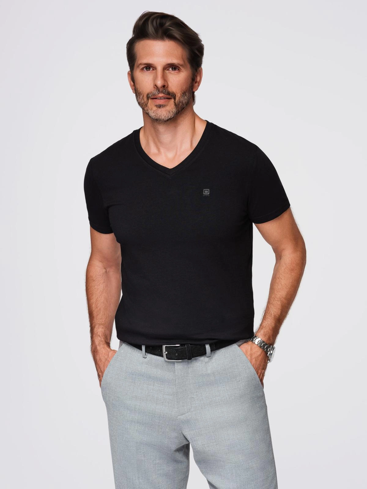 Opinie o Męski T-shirt V-NECK z elastanem - czarny V3 OM-TSCT-0106