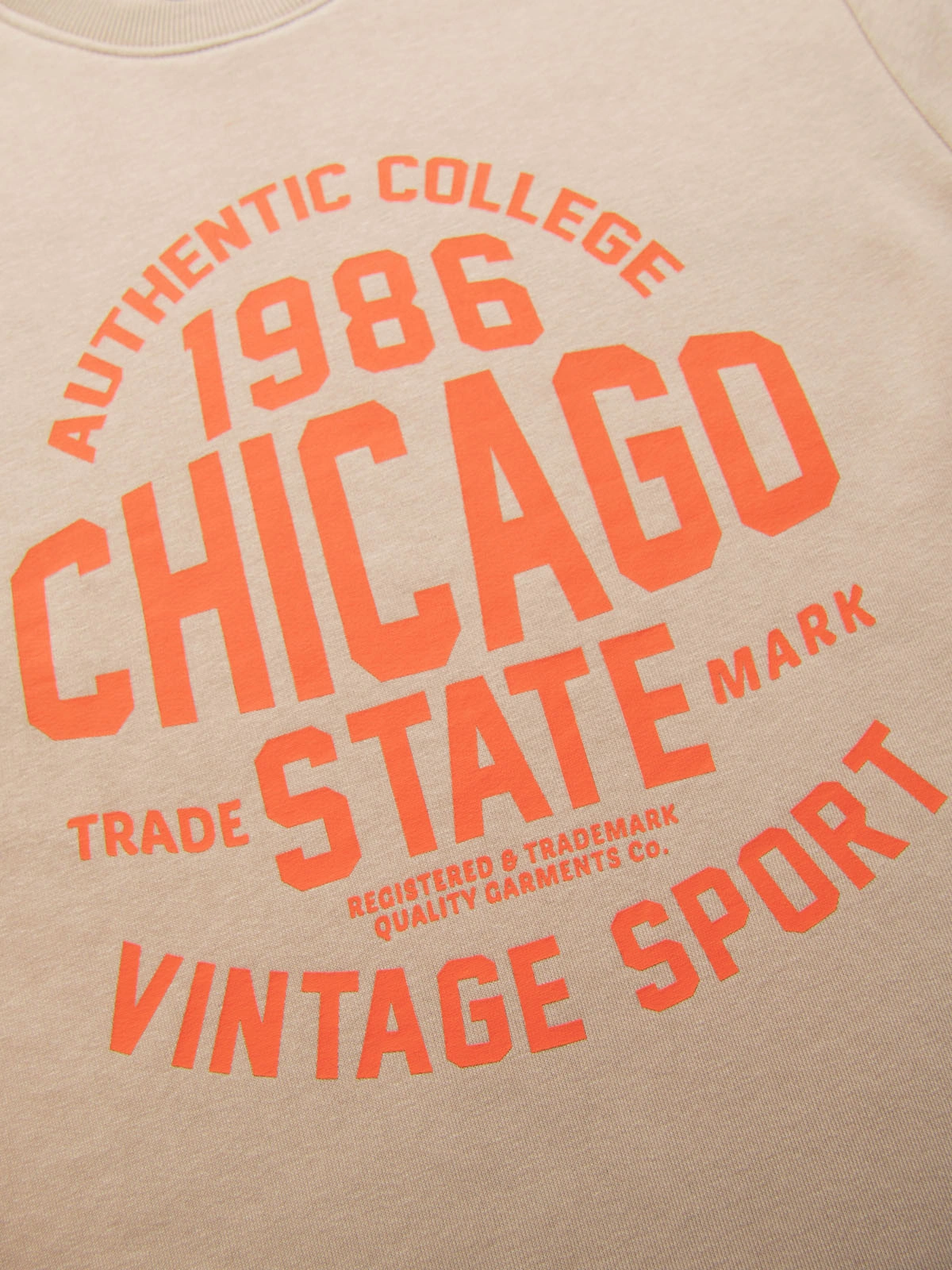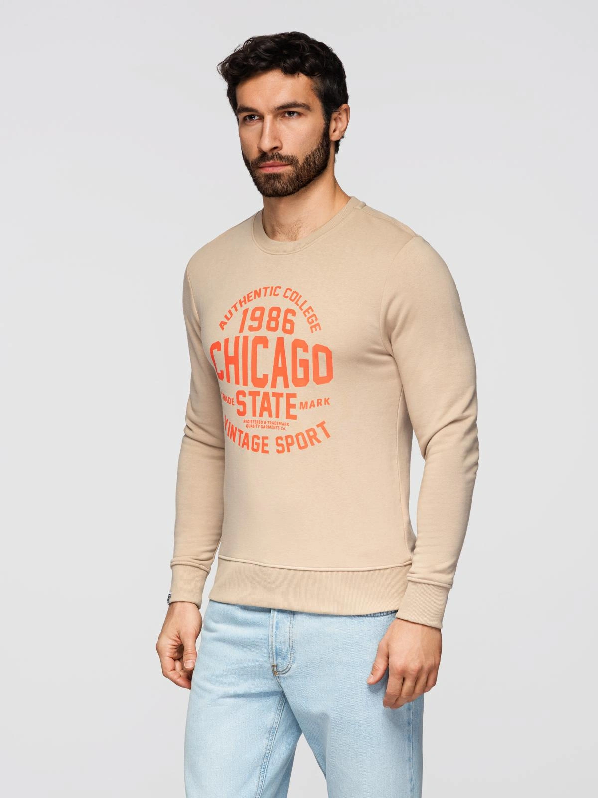 Opinie o Bluza męska nierozpinana z nadrukiem collegowym - piaskowa V1 OM-SSPS-0154