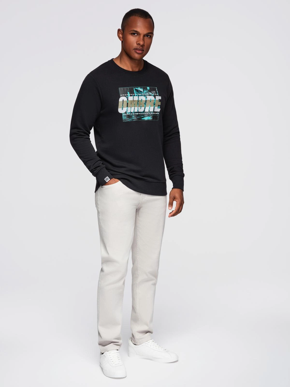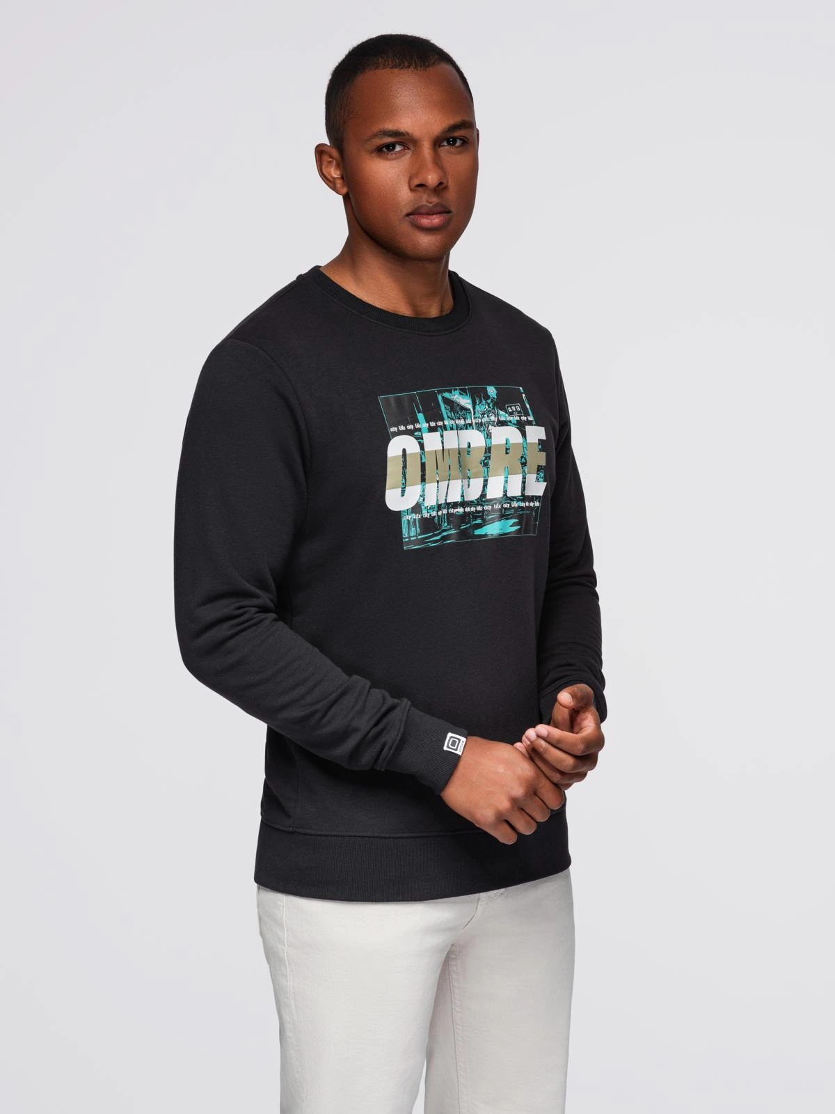 - Męska bluza z nadrukiem zakładana przez głowę - czarna V3 OM-SSPS-0156
