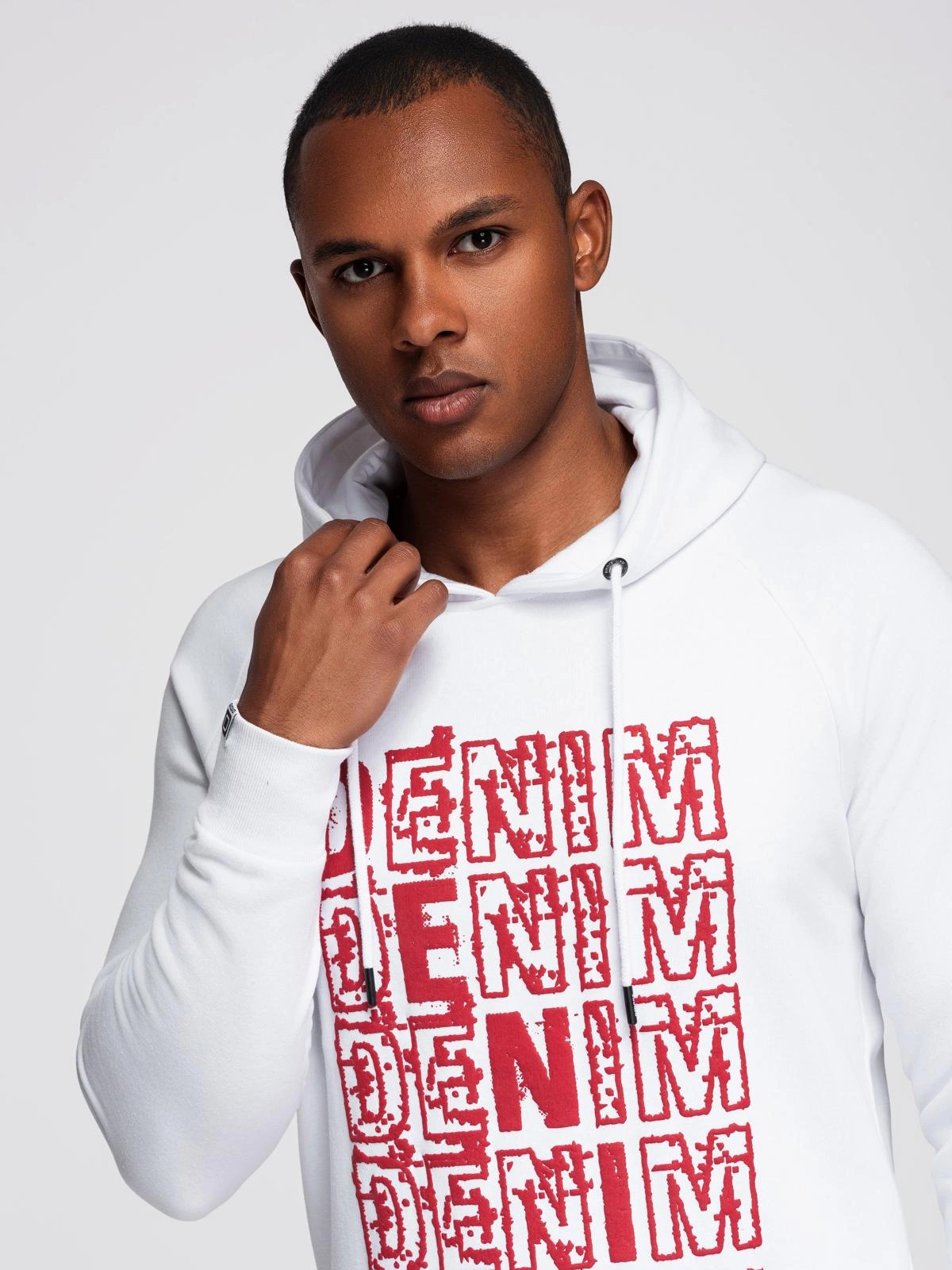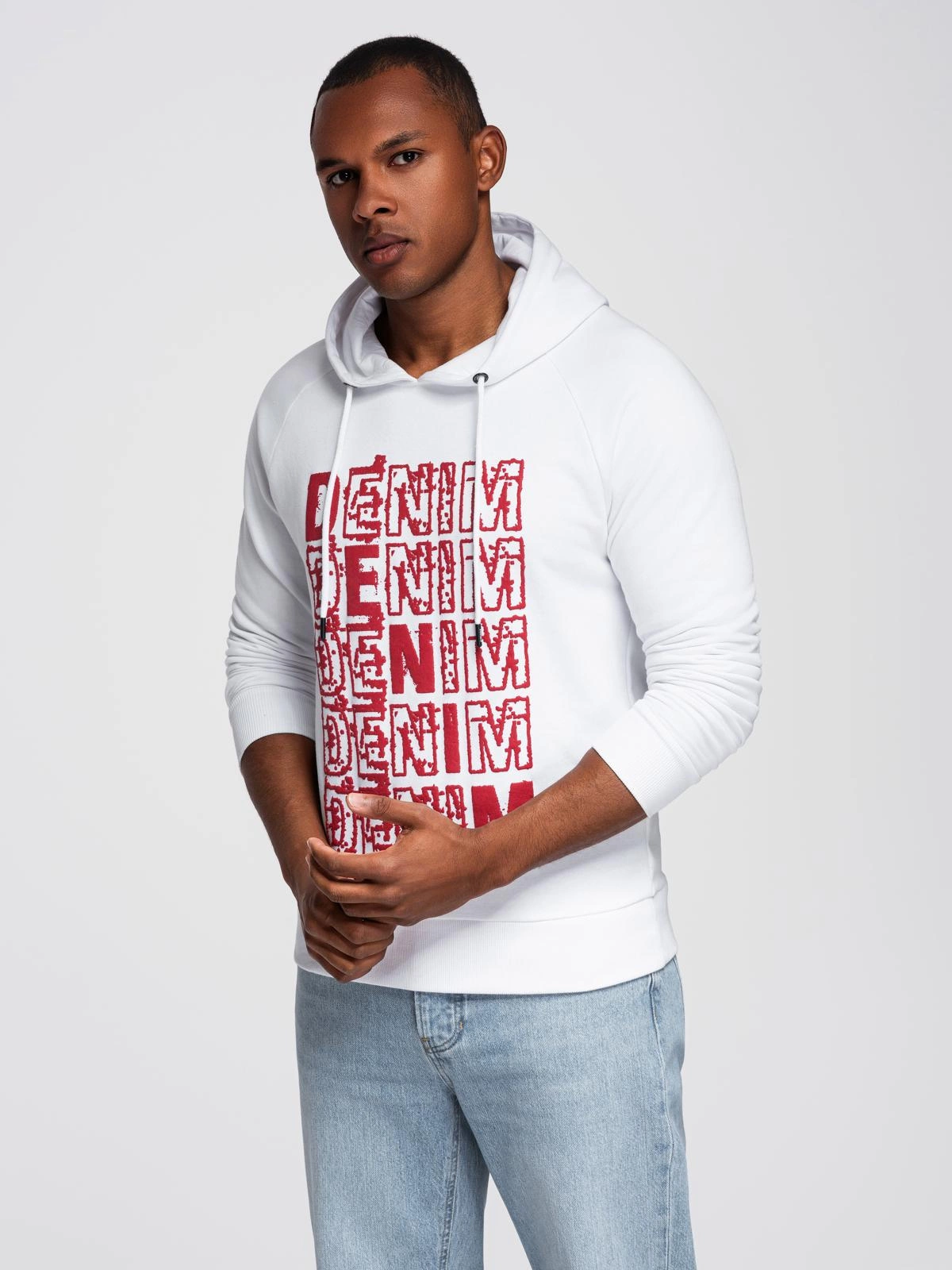 Opinie o Nierozpinana męska bluza kangurka z kapturem i nadrukiem - biała V3 OM-SSPS-0158
