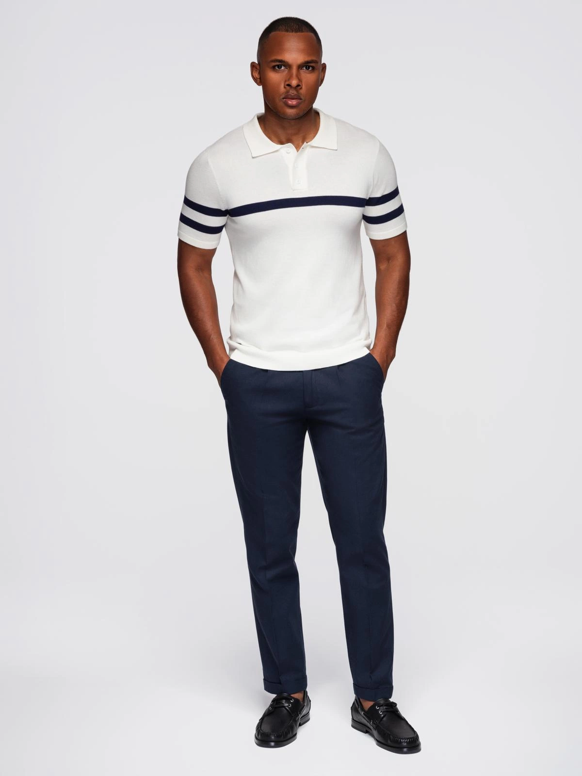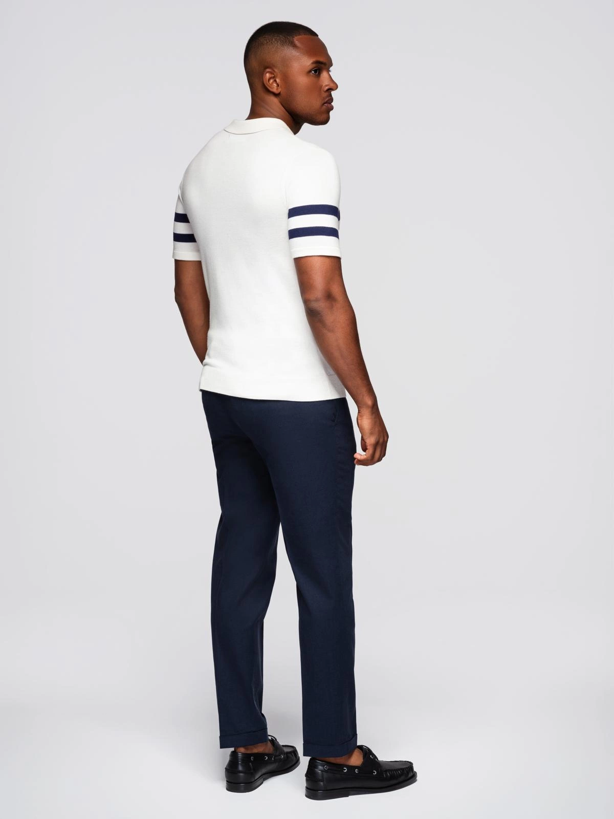 Koszulka męska polo z miękkiej dzianiny z kontrastowymi pasami - biała V1 OM-POSS-0118