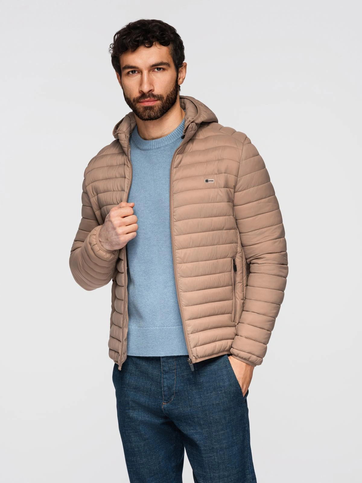 Męska kurtka pikowana pakowana w worek - brązowa V4 OM-JALP-0156