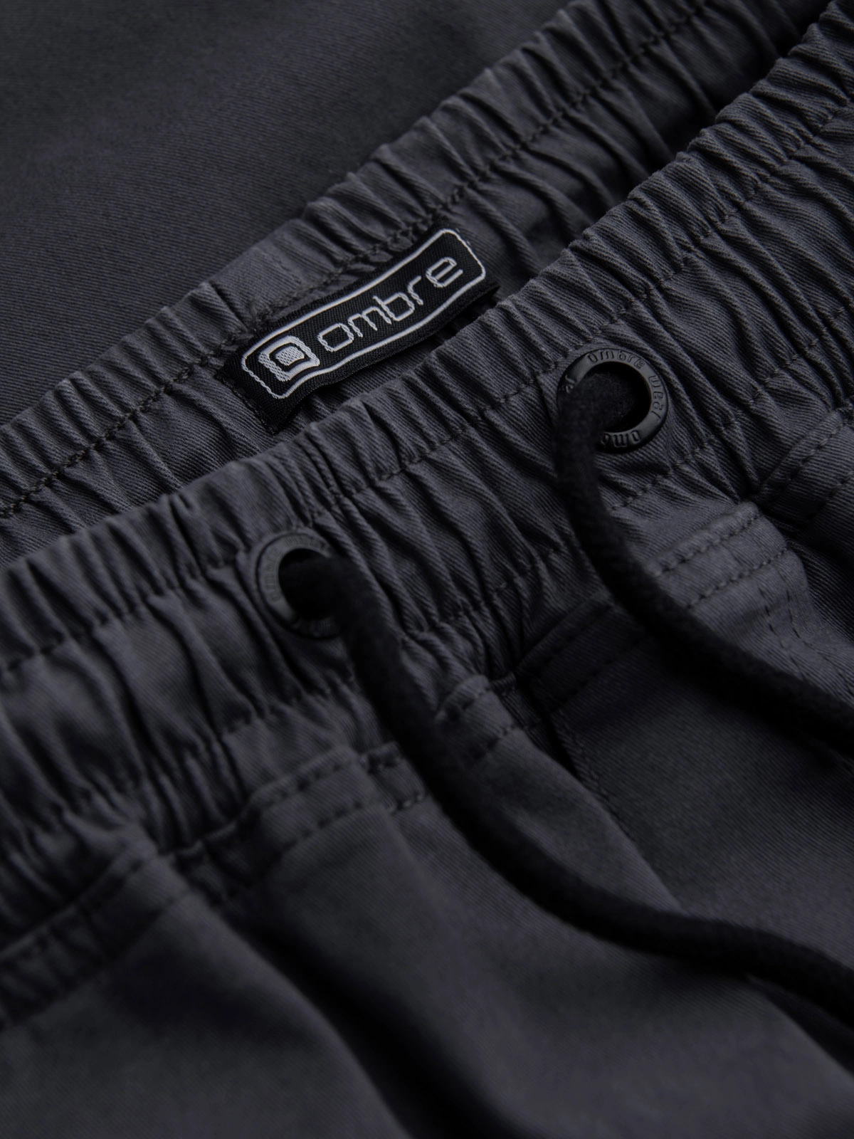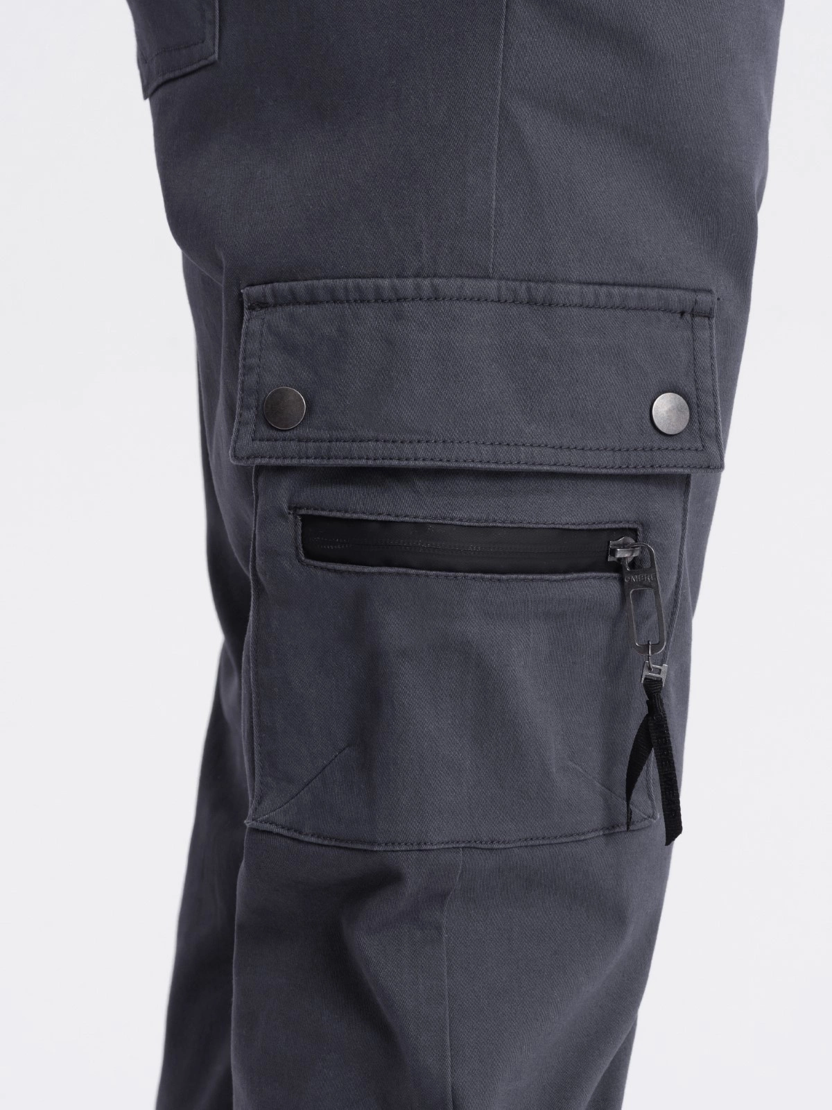 Męskie spodnie JOGGERY z zapinanymi kieszeniami cargo - grafitowe V3 OM-PAJO-0125