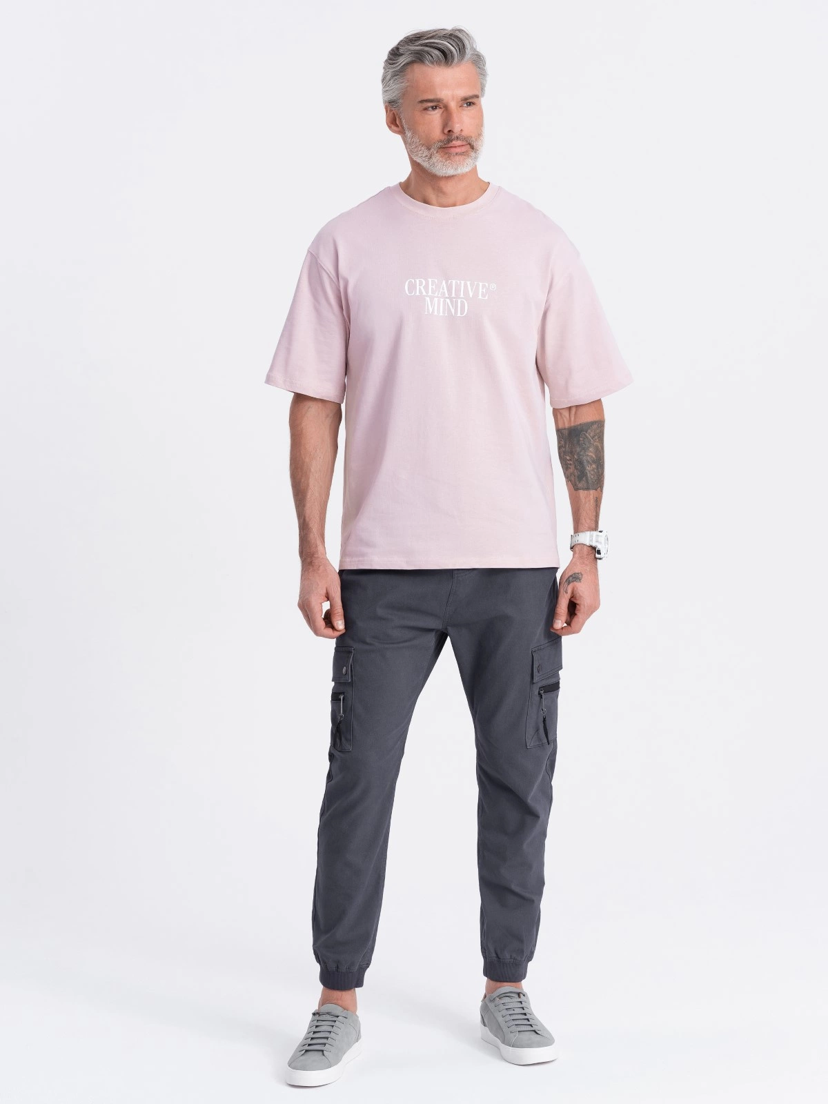 Opinie o Męskie spodnie JOGGERY z zapinanymi kieszeniami cargo - grafitowe V3 OM-PAJO-0125