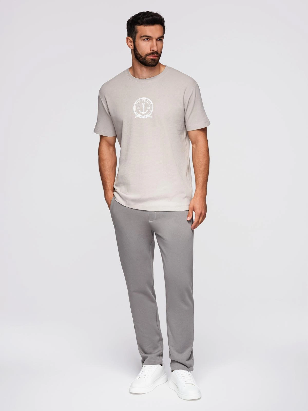 - Męskie dresowe spodnie z nogawką bez ściągacza - szare V8 OM-PABS-0206