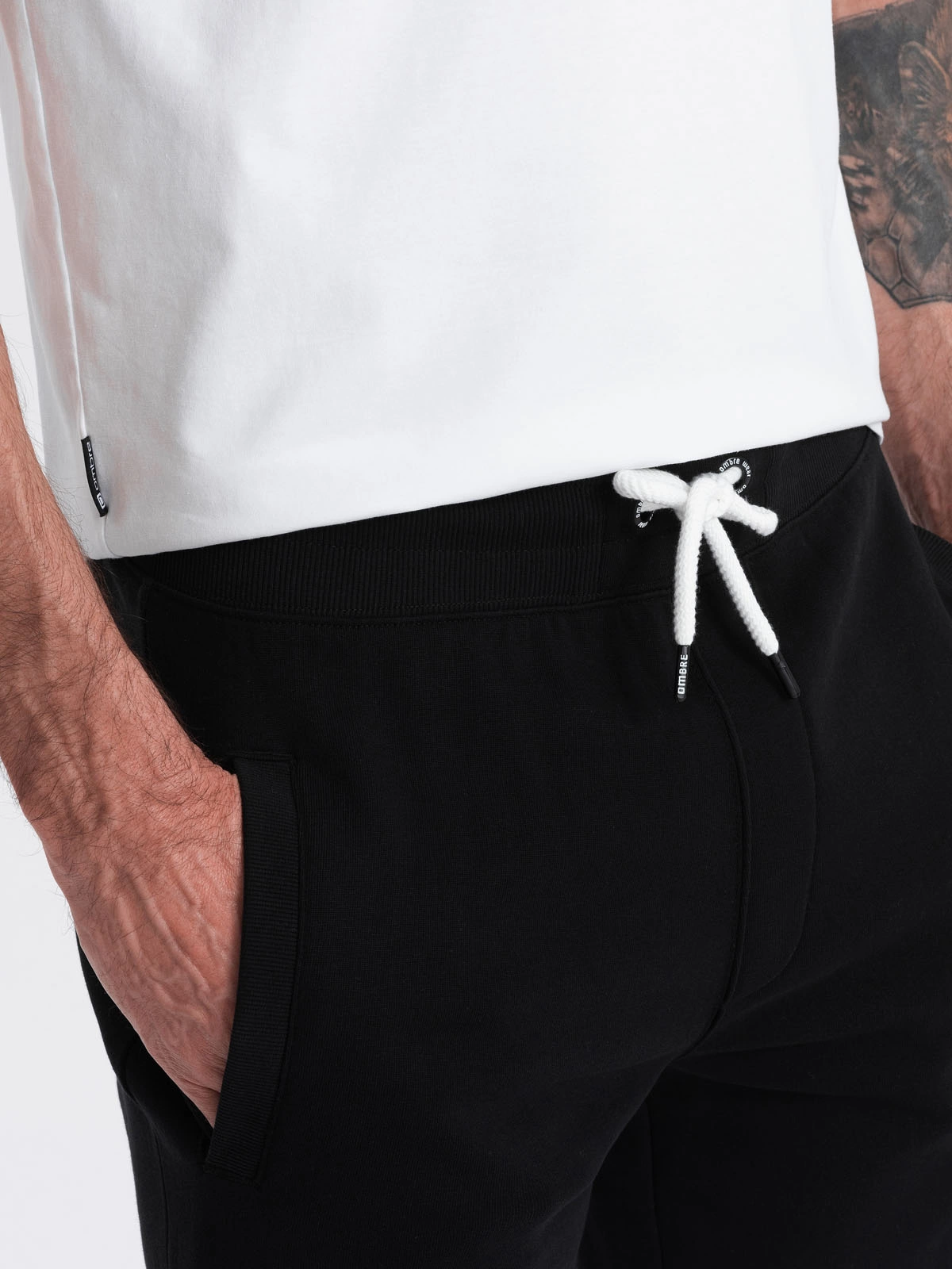 Dzianinowe męskie spodenki ze ściągaczem i kieszeniami - czarne V5 OM-SRBS-0139