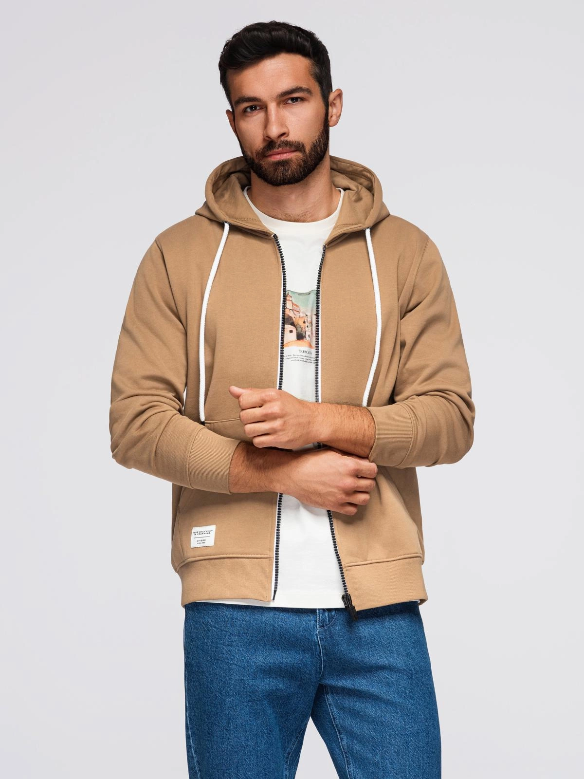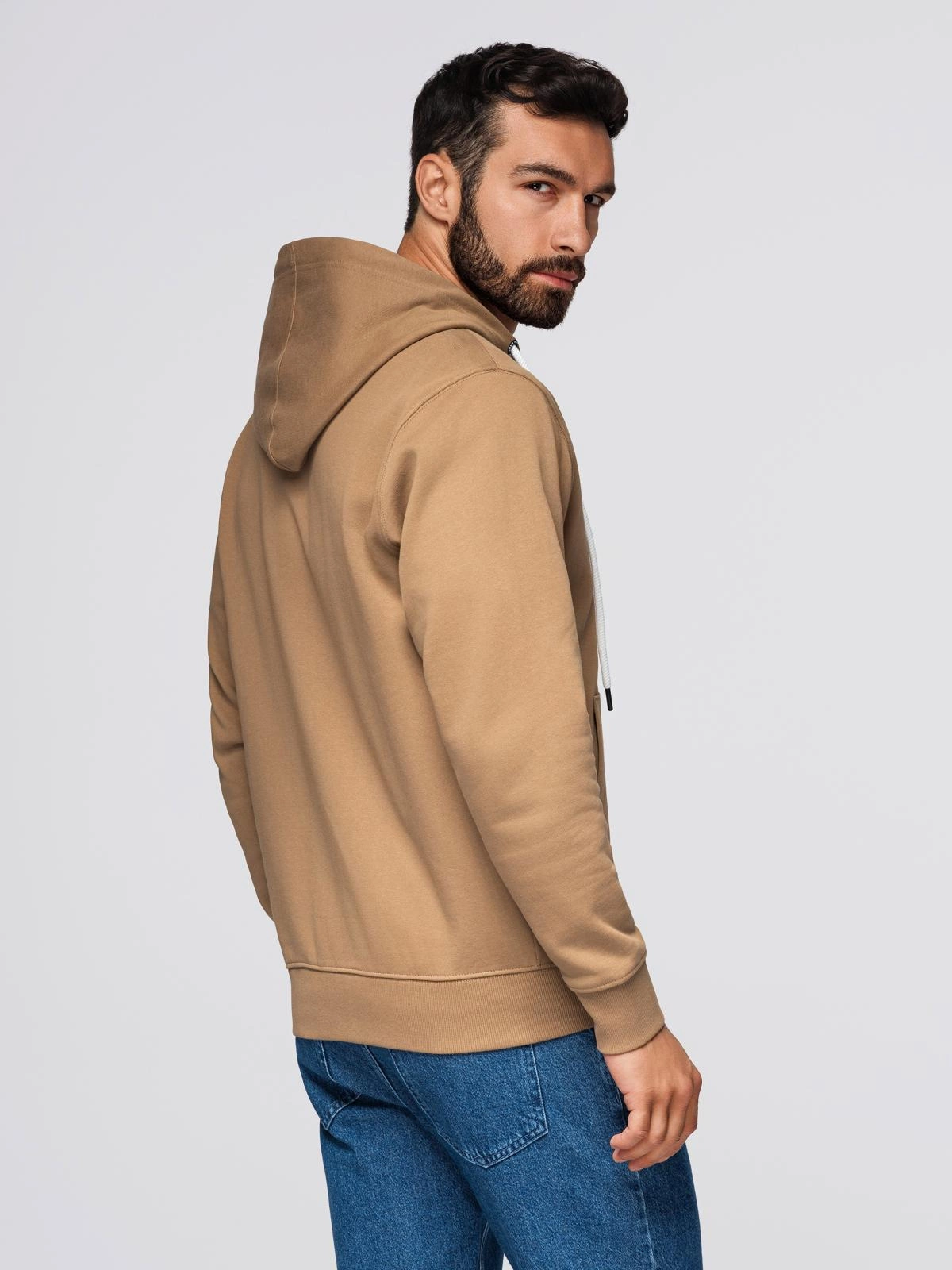 Opinie o Bluza męska dresowa BASIC rozpinana z kapturem - brązowa V2 OM-SSBZ-0178