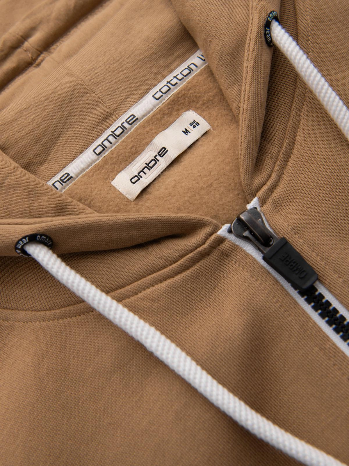 - Bluza męska dresowa BASIC rozpinana z kapturem - brązowa V2 OM-SSBZ-0178