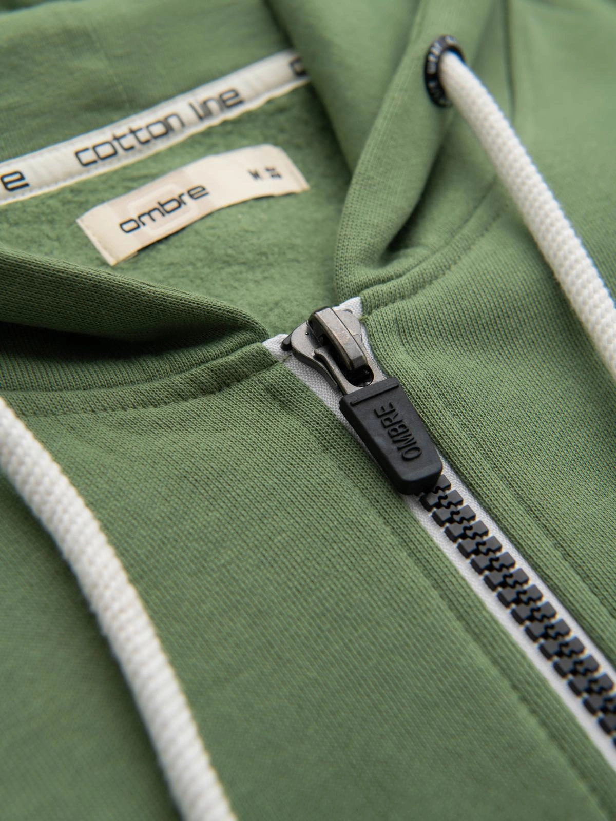 Bluza męska dresowa BASIC rozpinana z kapturem - zielona V3 OM-SSBZ-0178