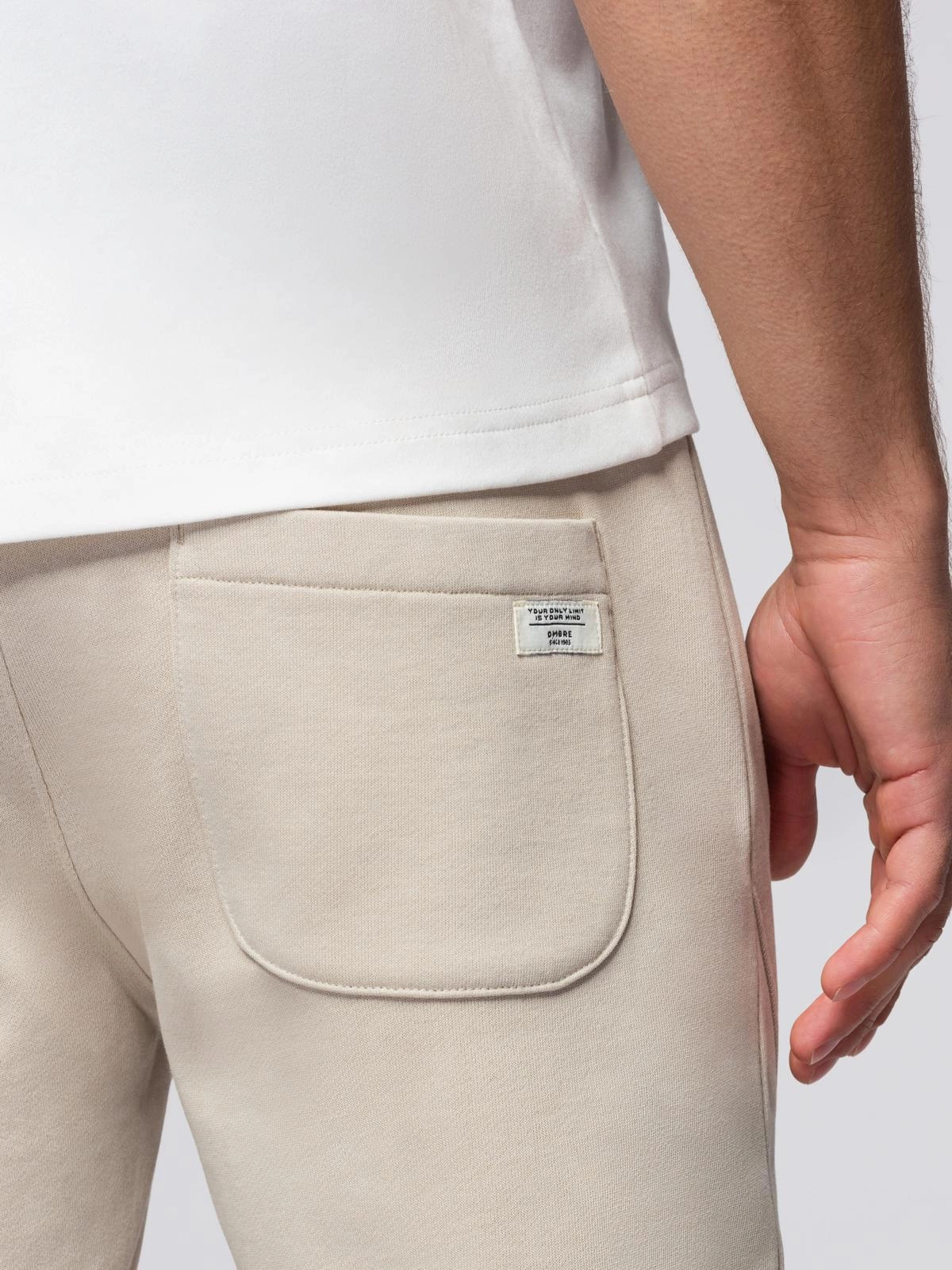 Spodnie męskie dresowe typu jogger - jasnobeżowe V1 OM-PABS-0173